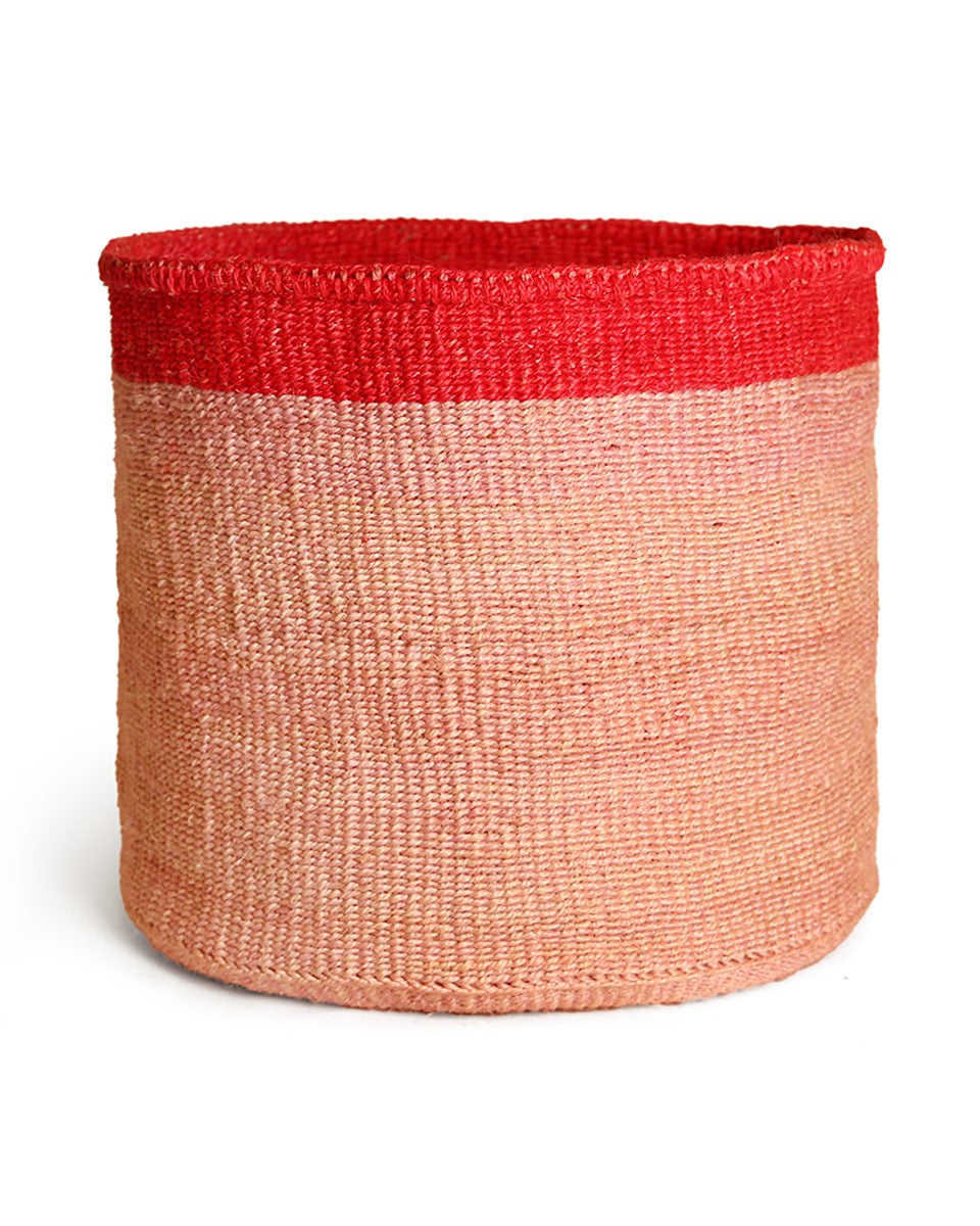 Der IMANI XL-Farbblockkorb ist der ultimative Aufbewahrungskorb für Ihr Zuhause: Verwenden Sie ihn als Wäschekorb, Spielzeugkorb oder praktischen Aufbewahrungskorb für Hausschuhe, Teppiche und Überwürfe – er eignet sich auch hervorragend als großer geflochtener Übertopf für Zimmerpflanzen. Mit einem roten Rand über einem Sockel in Vintage-Rosa bringt dieser große Sisalkorb einen Hauch kenianischer Farbe und ethisches Handwerk in jede Ecke Ihres Zuhauses.