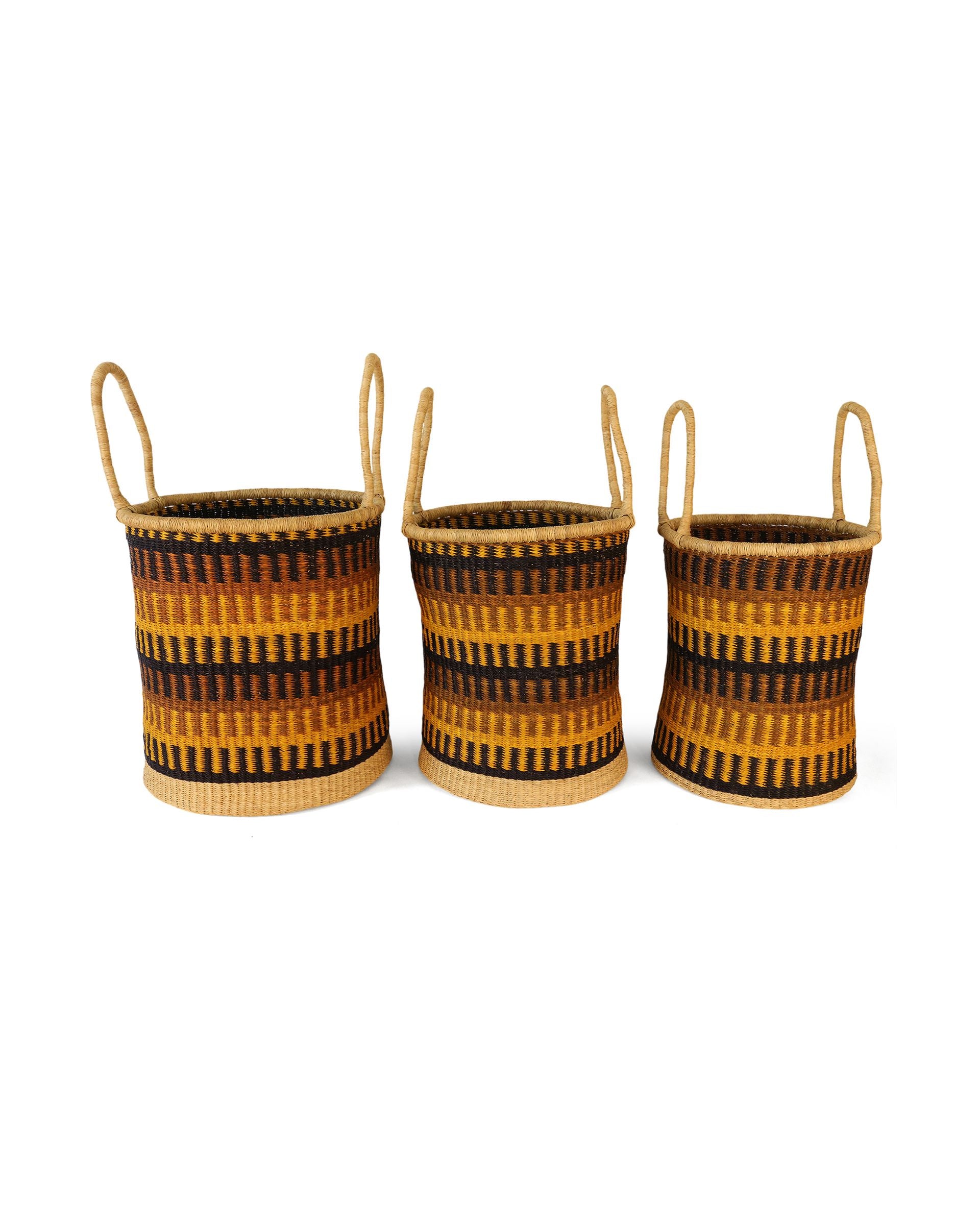 Makeover your fireplace and bring a splash of Ghanaian colour and texture to the home with the ABEEKU log basket, in sizes small, medium or large. With tribal patterns in yellow, brown and black, these tall baskets are ideal for keeping logs in but work equally well as a laundry basket or general home storage. Every handwoven log basket in this collection is designed by the weaver and each one is different.