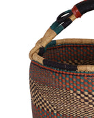 ABEIKU is a hand woven market basket produced in the traditional Ghanaian bolga basket style. With tribal patterns in Teal, Pink & Brown this basket is perfect for market trips or picnics, but can also be put to use all over the home – as a laundry basket, toy basket, vegetable basket, blanket basket – the possibilities are endless! Every market basket in this collection is totally unique – made once and sold once.
