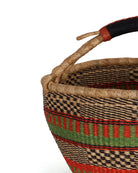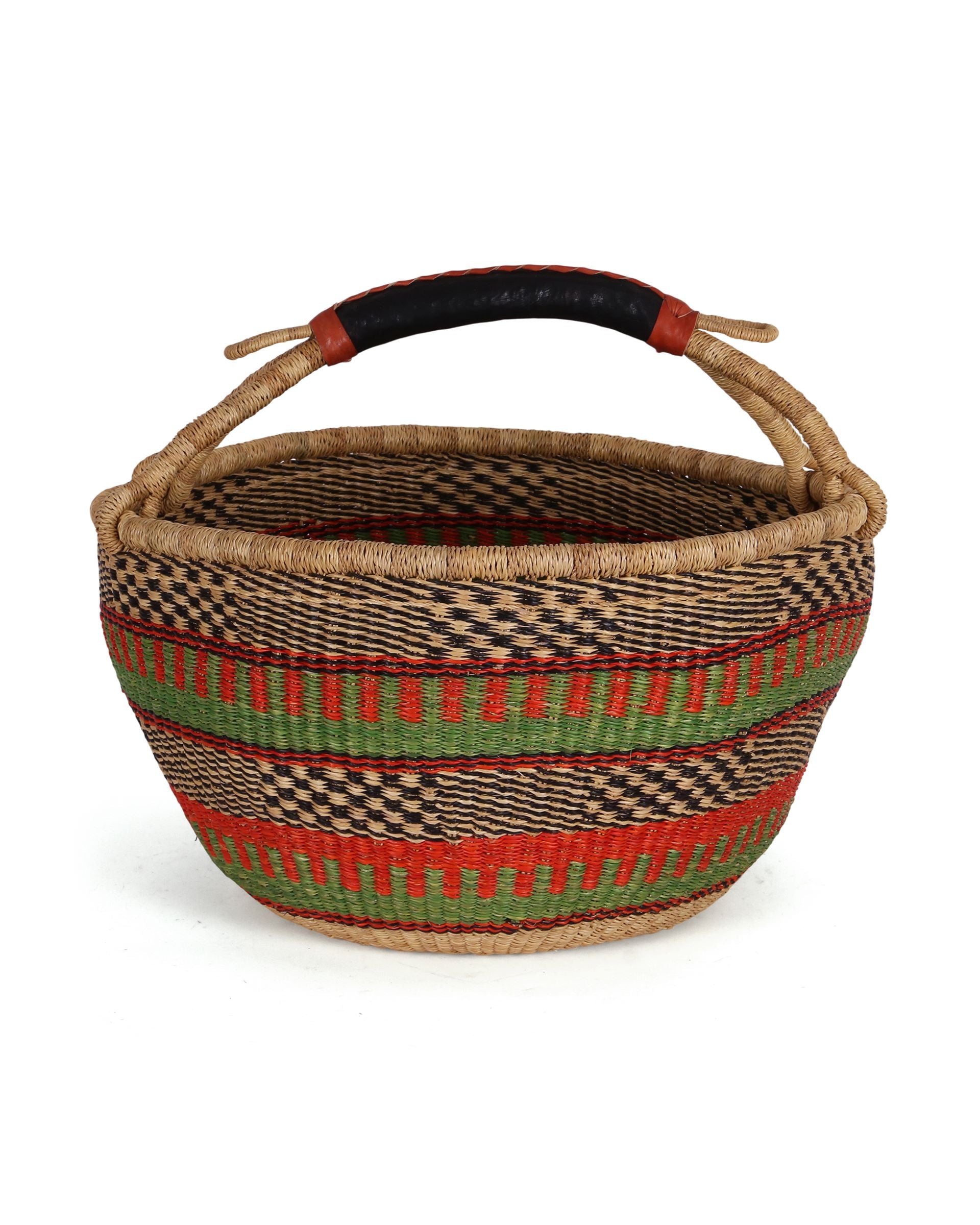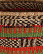 ABOAGYE is a hand woven market basket produced in the traditional Ghanaian bolga basket style. With tribal patterns in Orange, Green & Black this basket is perfect for market trips or picnics, but can also be put to use all over the home – as a laundry basket, toy basket, vegetable basket, blanket basket – the possibilities are endless! Every market basket in this collection is totally unique – made once and sold once.