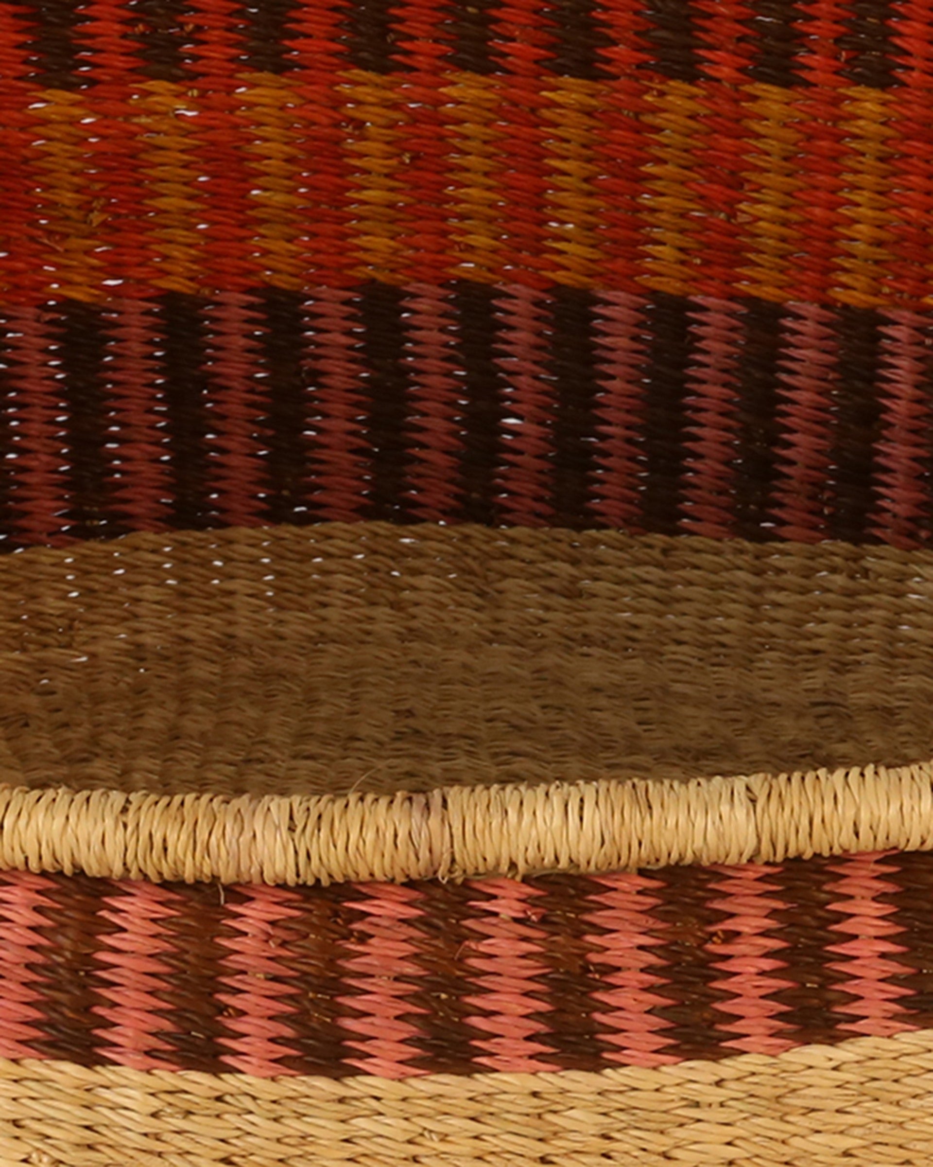 All of our baskets are exquisitely handmade in remote rural corners of Africa using natural materials, one piece at a time, with no two baskets the same. Although every effort is made to create only the best product, there may be natural blemishes or bumps and curves in places, as well as patches of dirt that can be sometimes noticed on the recycled wool sisal mix baskets. These should not be misconstrued as flaws, but are what make each basket a handmade product, charming and unique.