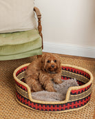 With orange, red, pink and brown stripes against a natural grass-coloured base, this beautiful little dog basket is sure to become a happy napping space your smaller breed of dog.