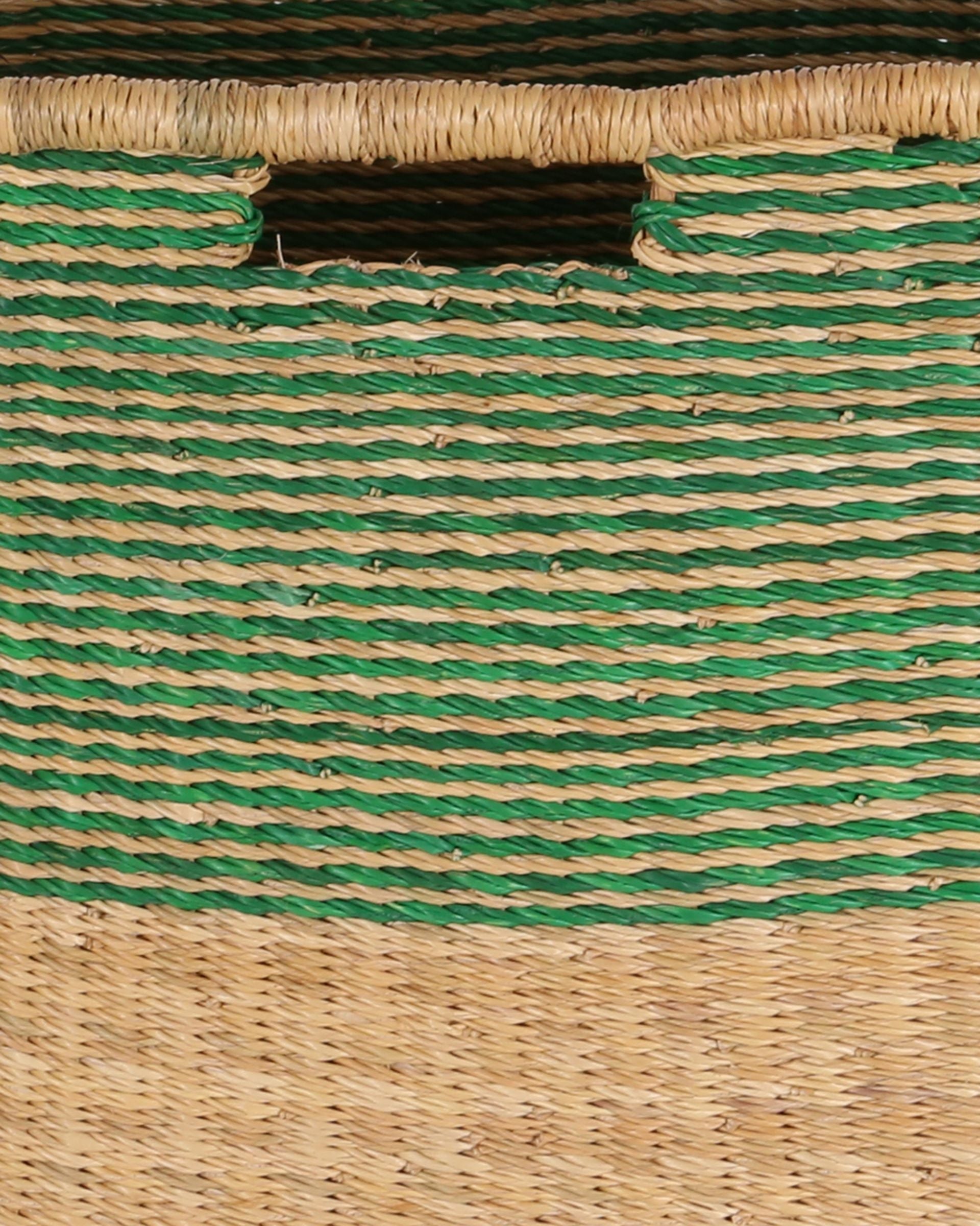 All of our baskets are exquisitely handmade in remote rural corners of Africa using natural materials, one piece at a time, with no two baskets the same. Although every effort is made to create only the best product, there may be natural blemishes or bumps and curves in places, as well as patches of dirt that can be sometimes noticed on the recycled wool sisal mix baskets. These should not be misconstrued as flaws, but are what make each basket a handmade product, charming and unique.