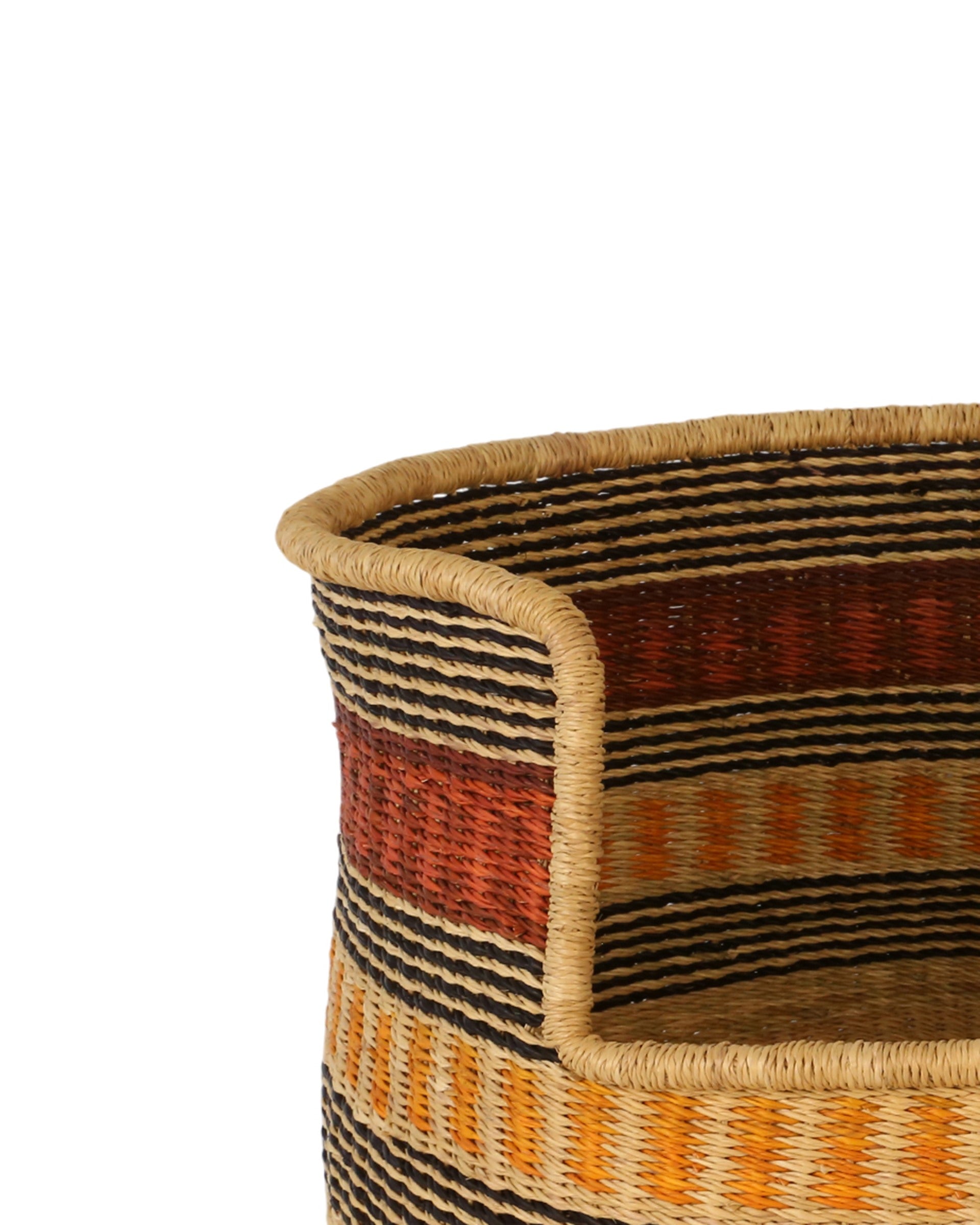 All of our baskets are exquisitely handmade in remote rural corners of Africa using natural materials, one piece at a time, with no two baskets the same. Although every effort is made to create only the best product, there may be natural blemishes or bumps and curves in places, as well as patches of dirt that can be sometimes noticed on the recycled wool sisal mix baskets. These should not be misconstrued as flaws, but are what make each basket a handmade product, charming and unique.