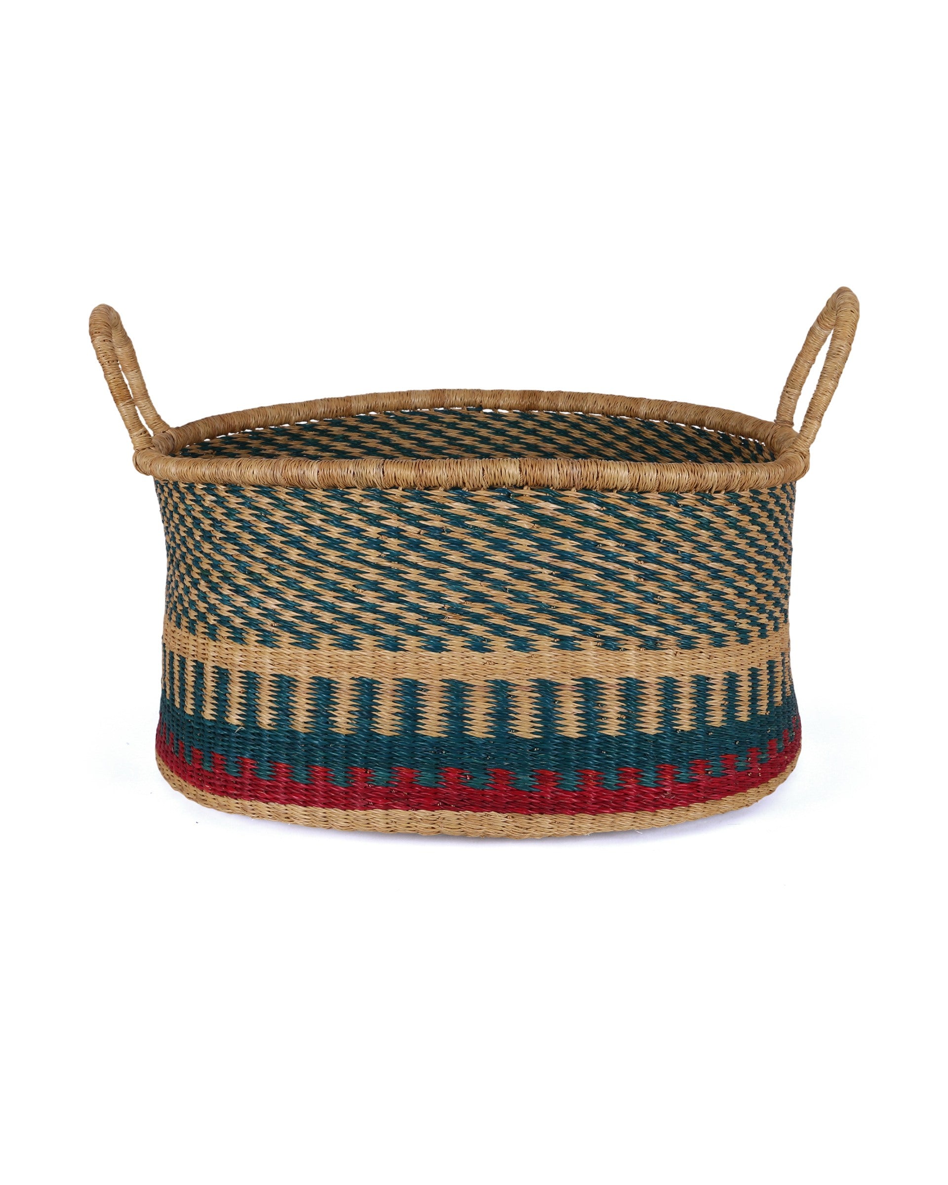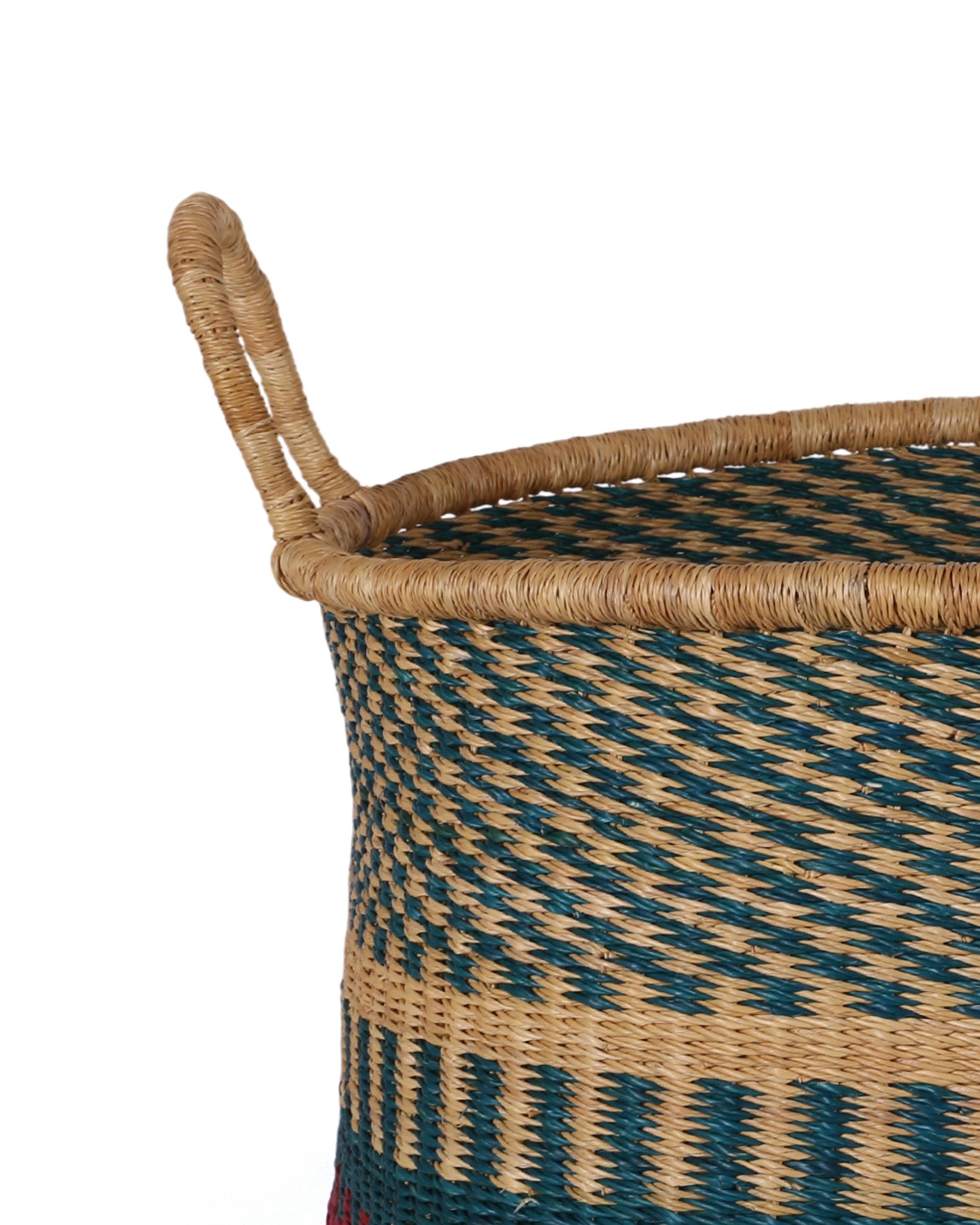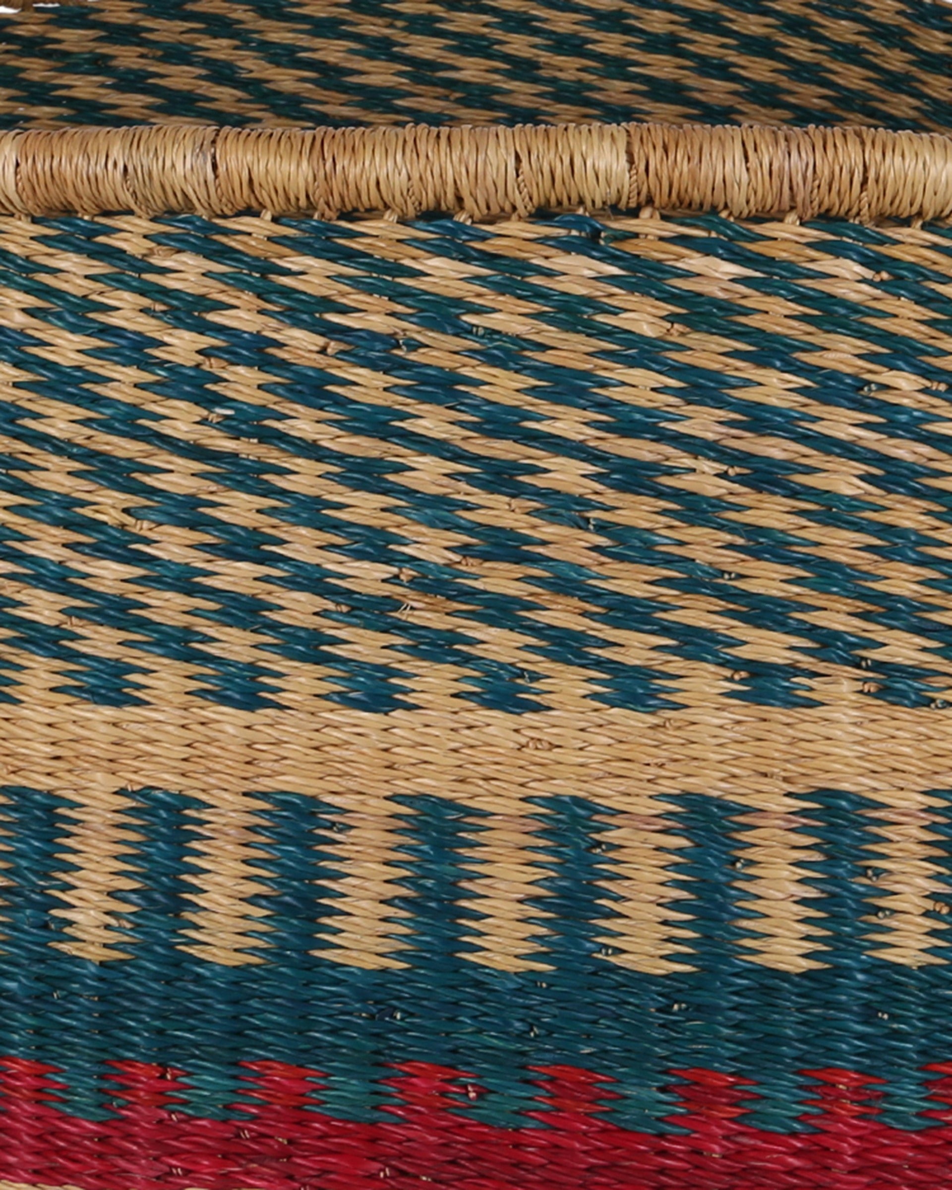 Woven from ethically-sourced veta vera grass in Northern Ghana, this colourful basket is made from robust veta vera grass – an indigenous raw material that’s sustainably sourced and perfect for producing durable baskets. The grass is hand-rolled before being woven by a skilled member of our partner weaving cooperative in Northern Ghana.