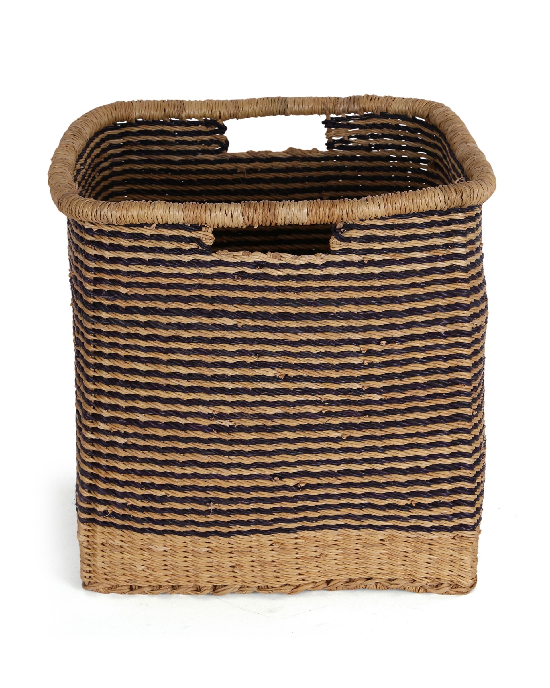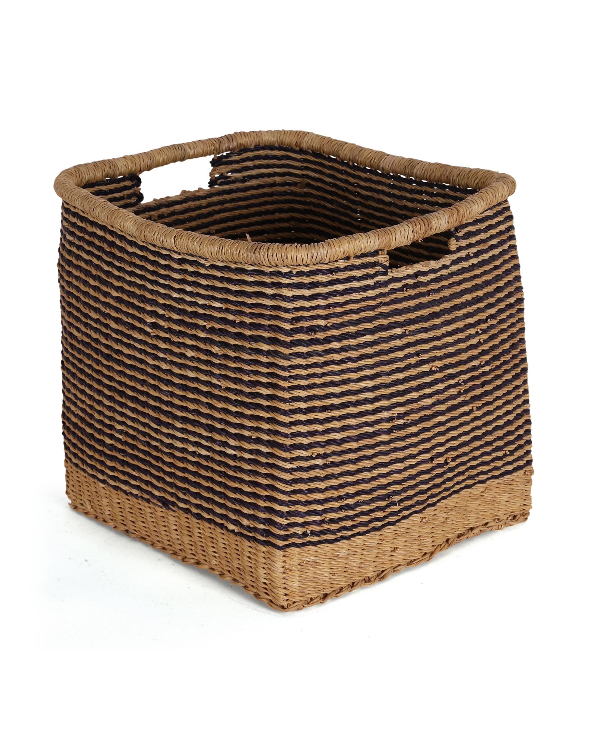 With a natural-tone base and top and a simple yet stylish black and natural weave through the sides, you can easily slide this cube basket off the shelf.
