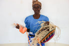 No two baskets from this collection are the same. The weavers source their yarns by travelling to local ‘gikombas’ (second-hand clothes markets) to purchase colourful woollen jumpers.  These are then washed and unravelled into separate balls of wool. The women who weave these small baskets have an exceptional eye for colour and pattern, producing each basket to their own design and choice of colours. Baskets take up to four days to complete, and weaving is often done around farm work, household chores, social engagements and childcare.