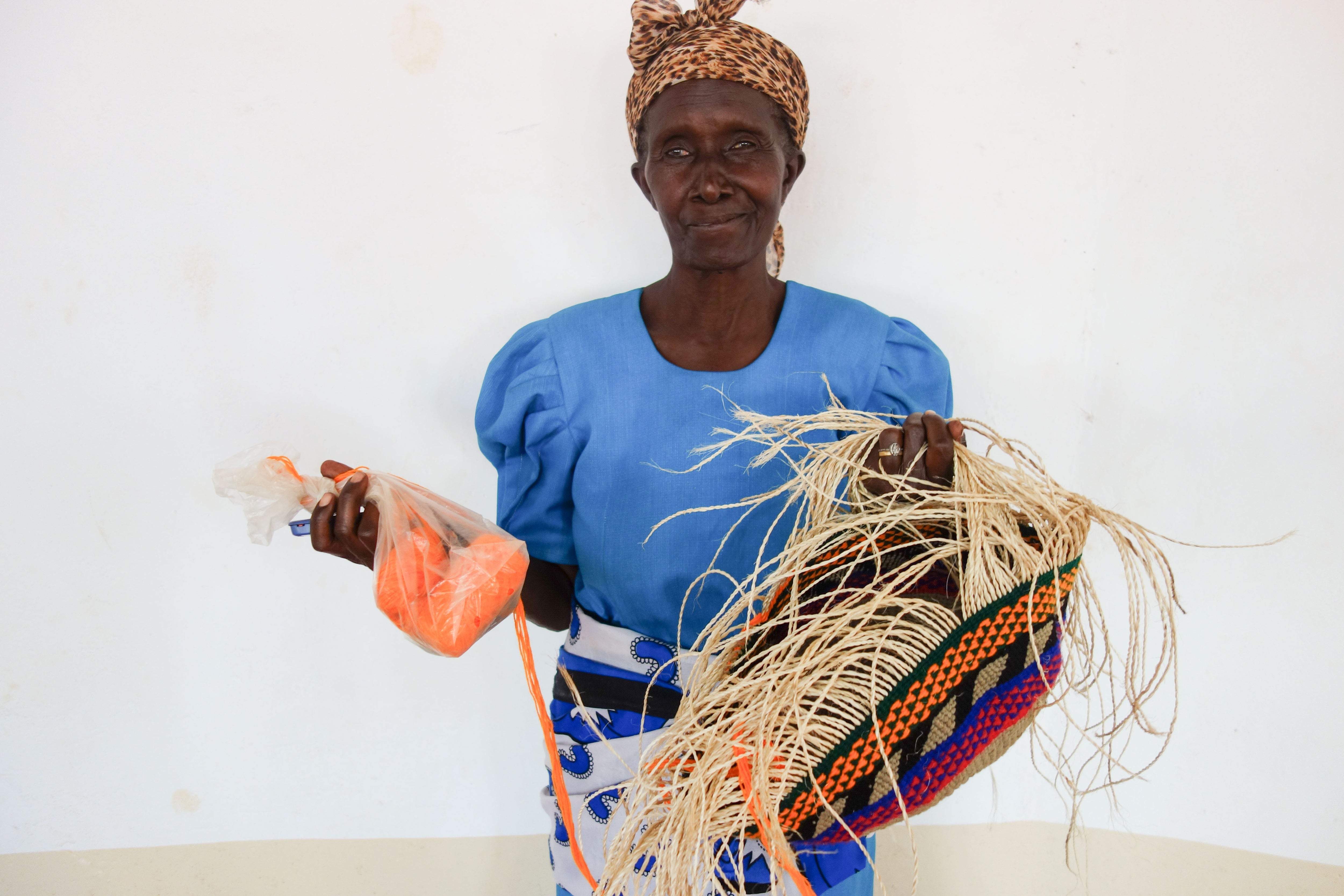 To purchase one of our wool and sisal baskets is to support the revival of kiondo weaving, and in doing so you help us to support the weavers in the provision of a sustainable income. Basket weaving has become a sustainable source of additional income for the weavers, whose main earnings come from farming – a line of work increasingly vulnerable to drought. Each colourful basket comes with some information about the weaving cooperative that produced it, and you can meet these weavers HERE.