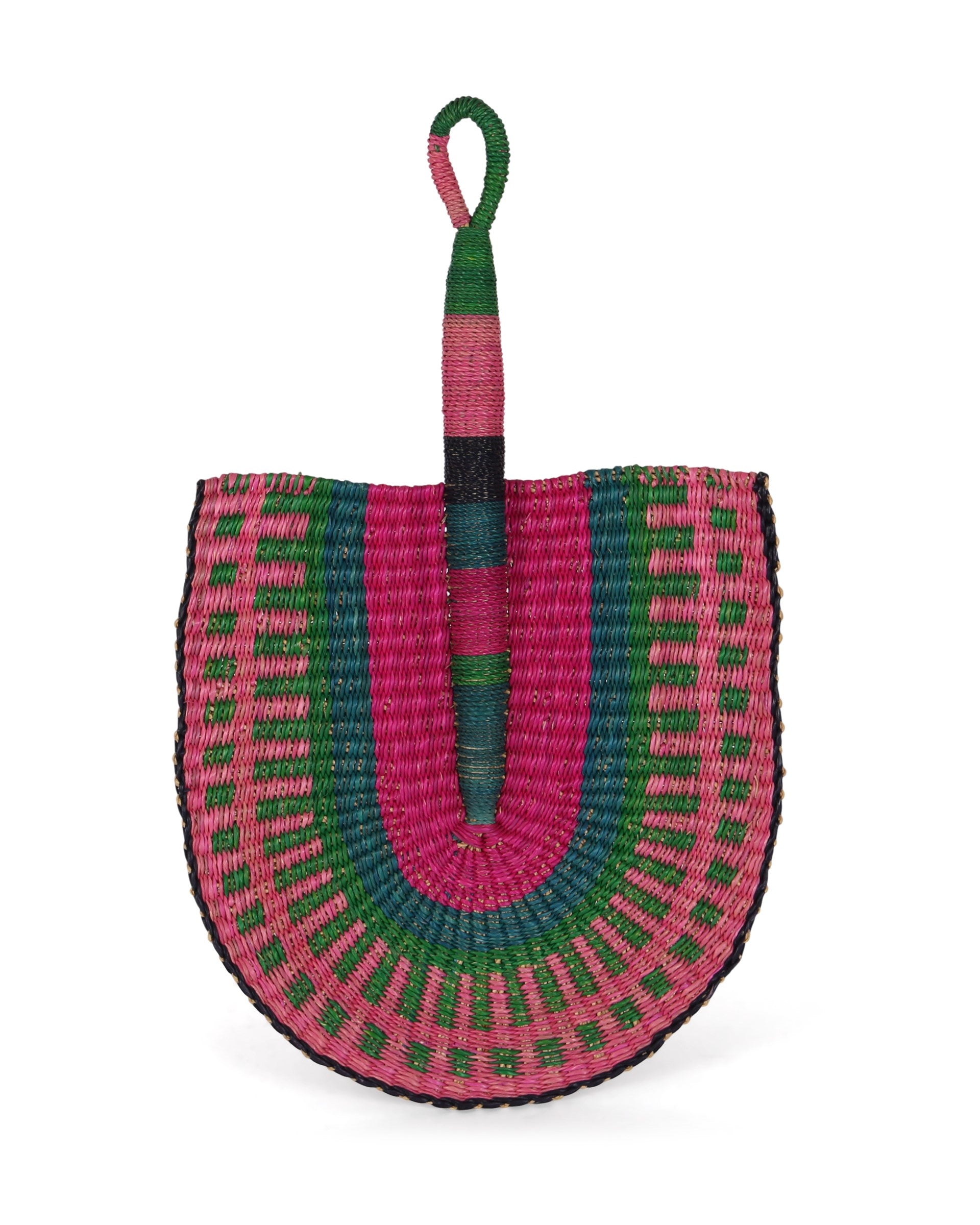 ABOSO: Pink, Blue and Green Woven Fan