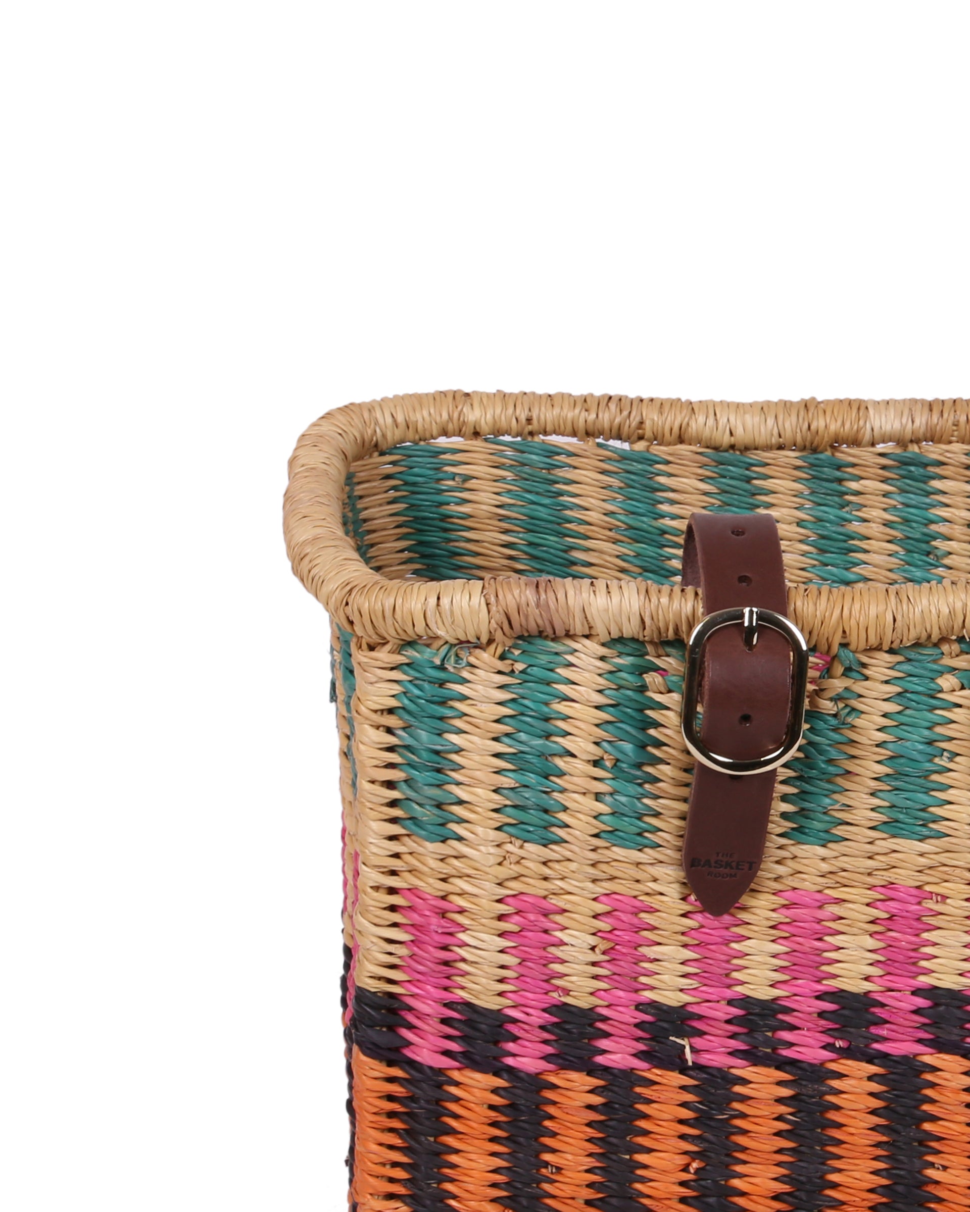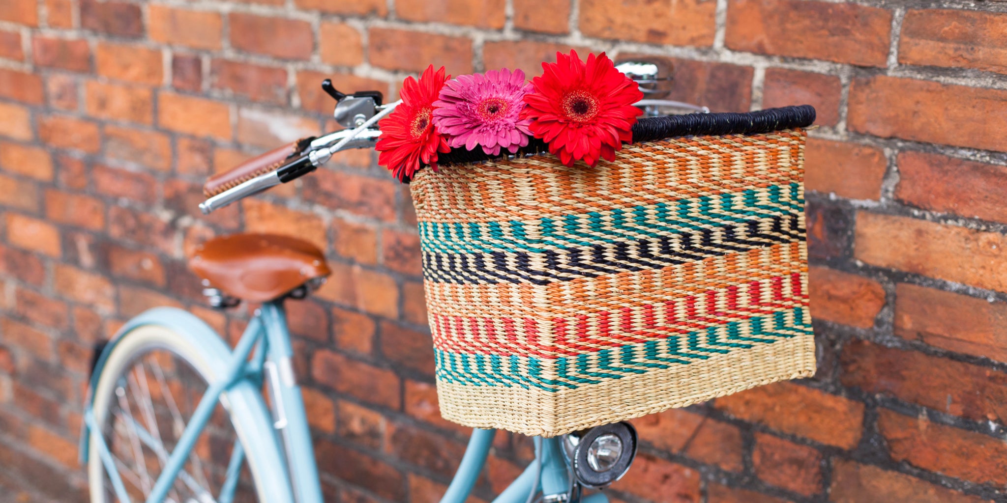 Each bike basket takes up to three days to weave by hand, and is made from wild veta vera – also known as Elephant Grass. This indigenous grass is harvested, split, hand-rolled and dyed before it is ready to be woven by a skilled member of our partner weaving cooperative in Northern Ghana.