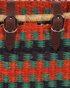 Give those two wheels an instant upgrade with this beautiful rectangular bicycle basket. YAMATWA is a unique, one of a kind bike basket, featuring a striking design in Orange, Turquoise & Navy . Made from robust veta vera grass then colourfully dyed, the weavers have complete creative freedom resulting in exquisite designs that are only ever made once.