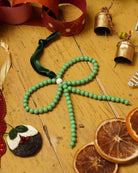 GAWA: Green and White Beaded Christmas Bow Tree Decoration