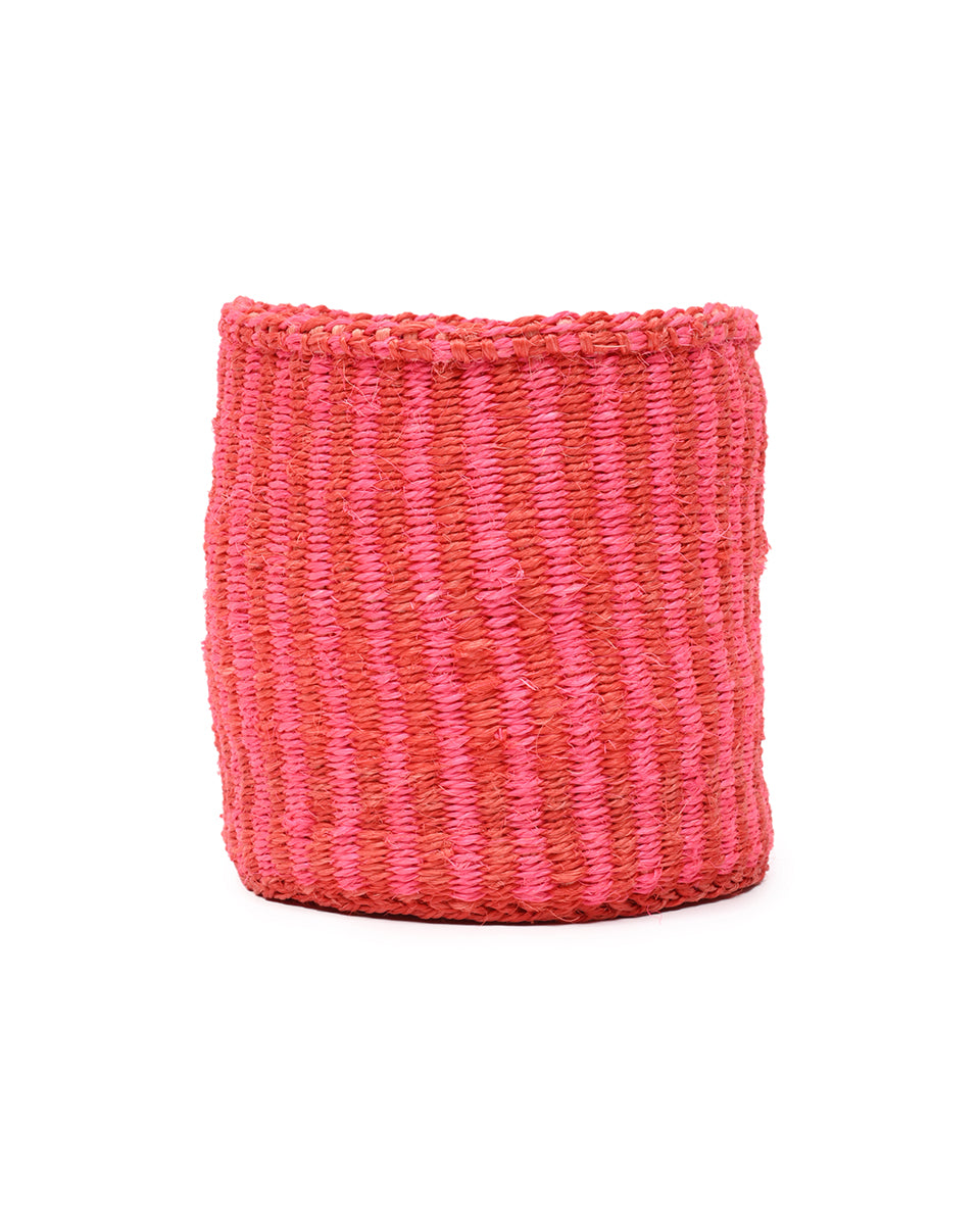 KIWANDA: Pink & Orange Pinstripe Woven Storage Basket