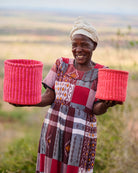 All of our baskets are exquisitely handmade in remote rural corners of Africa using natural materials, one piece at a time, with no two baskets the same. Although every effort is made to create only the best product, there may be natural blemishes or bumps and curves in places, as well as patches of dirt that can be sometimes noticed on the recycled wool sisal mix baskets. These should not be misconstrued as flaws, but are what make each basket a handmade product, charming and unique.