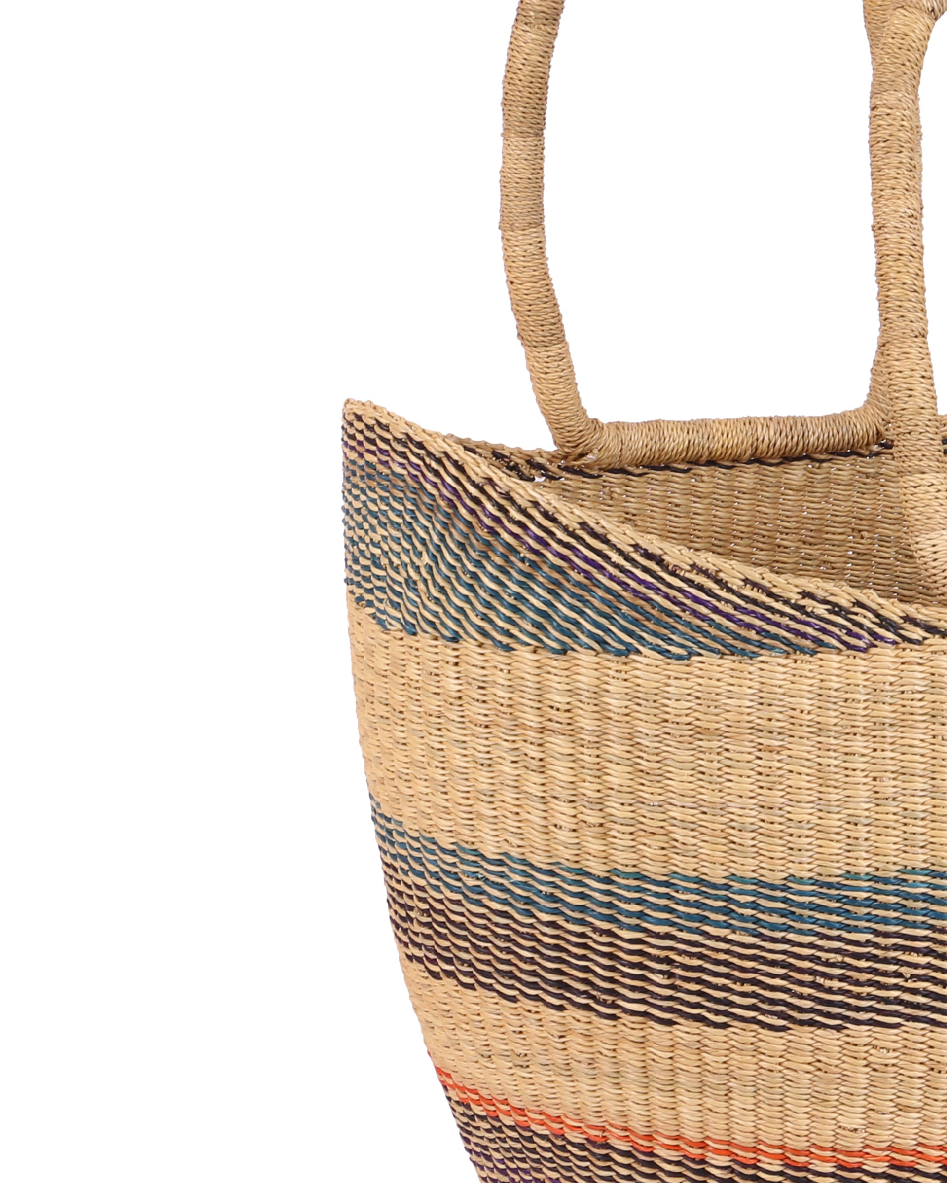 Made from ethically-sourced veta vera grass in Northern Ghana, this beautiful bolga basket is 100% vegan with no leather finishes. BANKYE is made from robust veta vera grass - a fantastic material for producing durable baskets. The grass is hand-rolled before being woven by a skilled member of our partner weaving cooperative in Northern Ghana. These grasses grow locally and are picked from the tip, allowing the root to continue to grow.