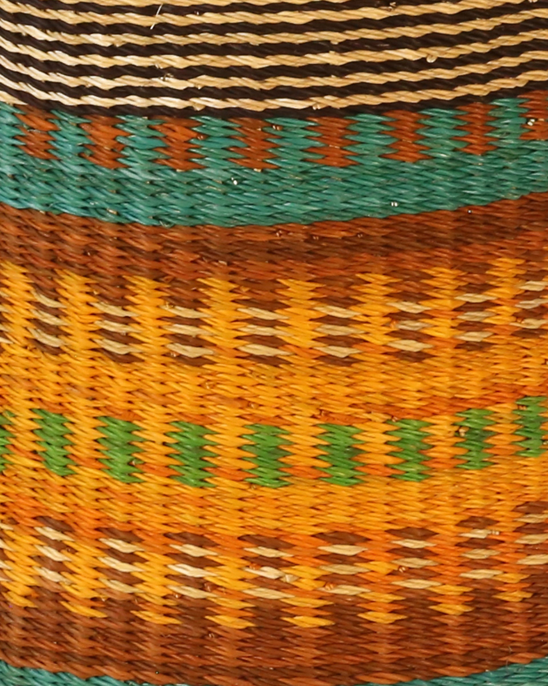 All of our baskets are exquisitely handmade in remote rural corners of Africa using natural materials, one piece at a time, with no two baskets the same. Although every effort is made to create only the best product, there may be natural blemishes or bumps and curves in places, as well as patches of dirt that can be sometimes noticed on the recycled wool sisal mix baskets. These should not be misconstrued as flaws, but are what make each basket a handmade product, charming and unique.