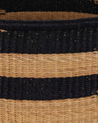Transform your space and bring a dash of Ghanaian colour to your home with the KURADO round floor basket, in a medium size. With black and natural tribal patterns, this basket is perfect for storing kindling and logs but can also be put to use all over the home – as a laundry basket, toy basket, vegetable basket, blanket basket – the possibilities are endless! Every round storage basket in this collection is totally unique – made once and sold once.