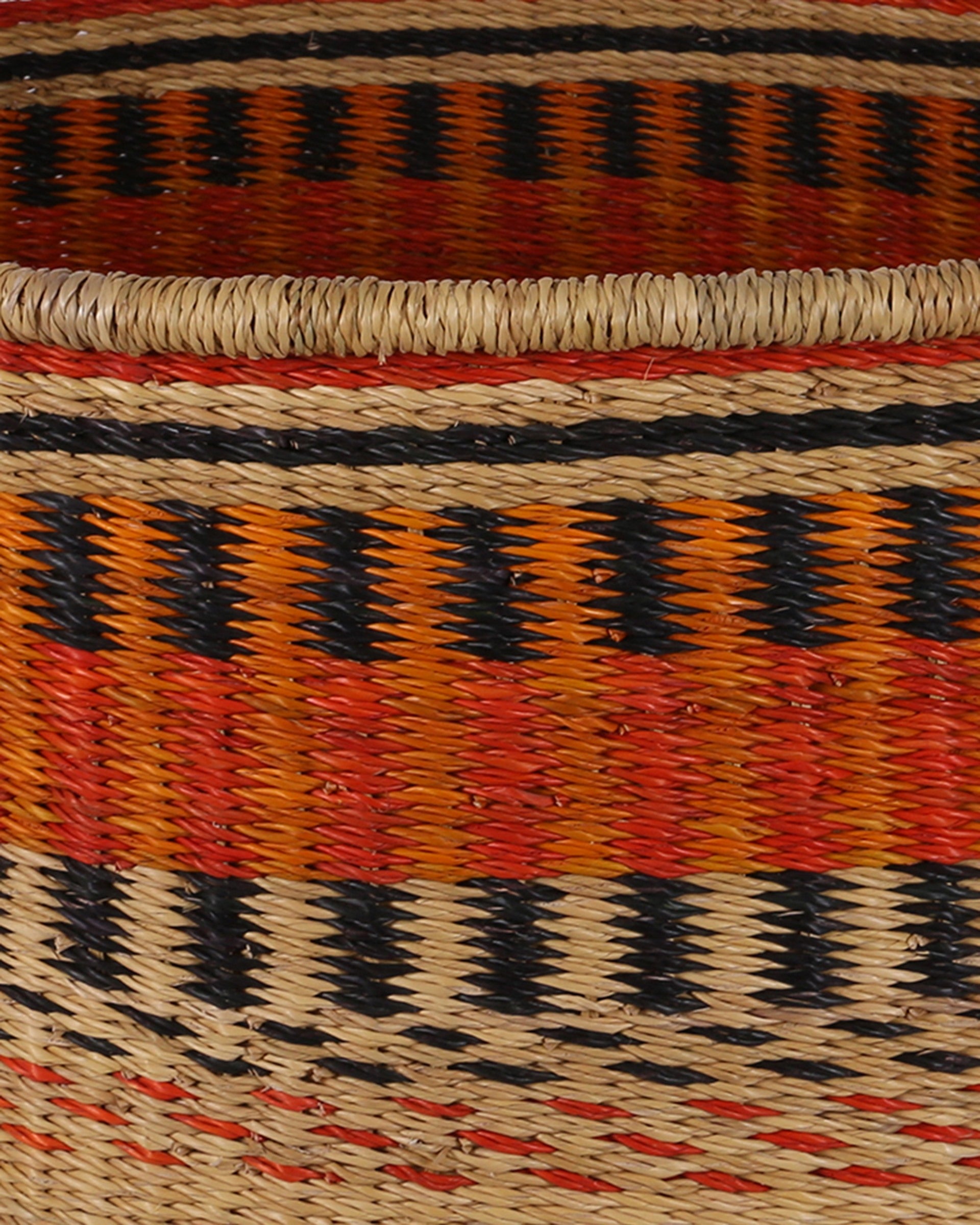 Woven from ethically-sourced veta vera grass in Northern Ghana, this colourful basket is made from robust veta vera grass – an indigenous raw material that’s sustainably sourced and perfect for producing durable baskets. The grass is hand-rolled before being woven by a skilled member of our partner weaving cooperative in Northern Ghana.