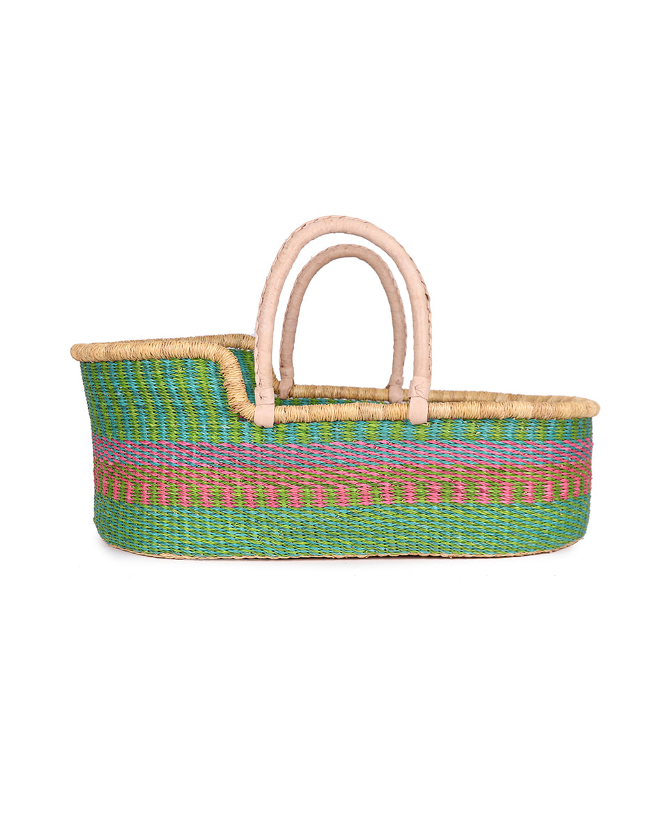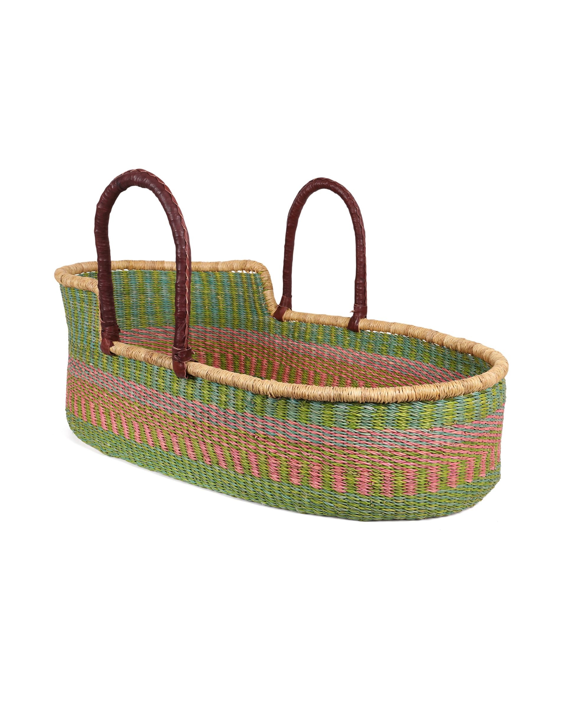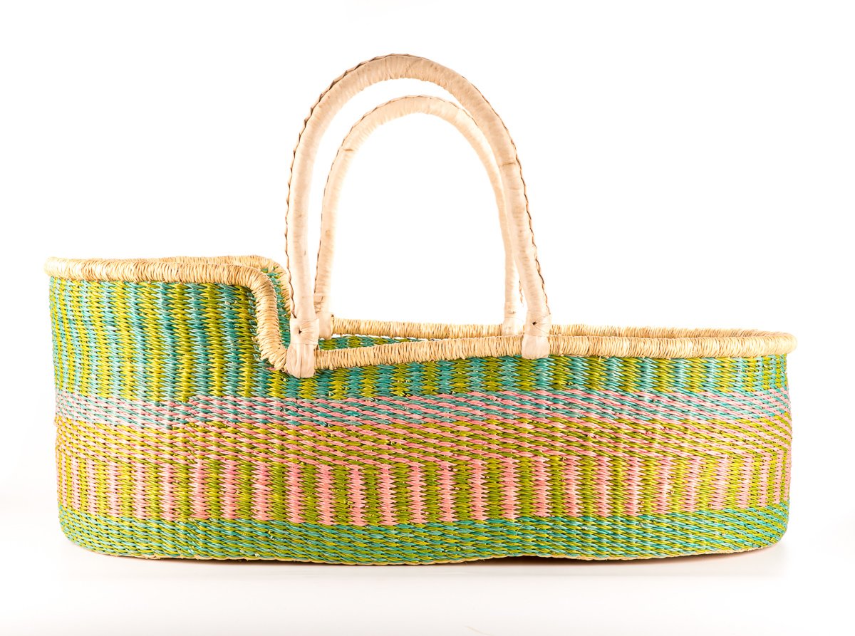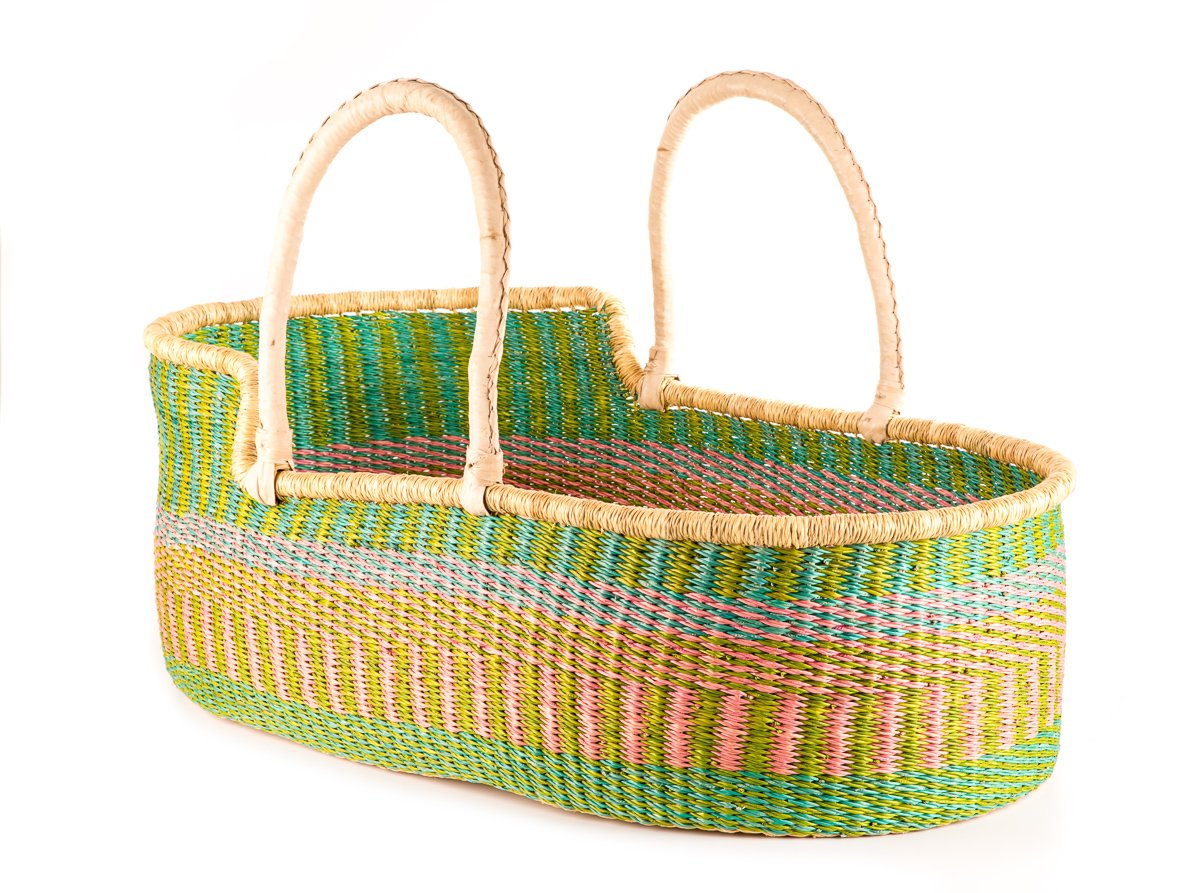 Meet our award winning Moses baskets: winners of the bronze award for best baby crib, pod or Moses design in the Junior Design Awards 2021. Keep a close eye on baby as they nap in comfort and style with our exquisite woven baby baskets. These hand woven Moses baskets are ethically hand made in Northern Ghana: nine different moses basket designs finished in sustainably-sourced goat’s leather. We think you’ll be hard pressed to find an ethical baby gift that brings more joy and delight than one of these babies.