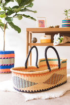 WINNEBA: Black, Orange & Turquoise Geo Woven Moses Basket