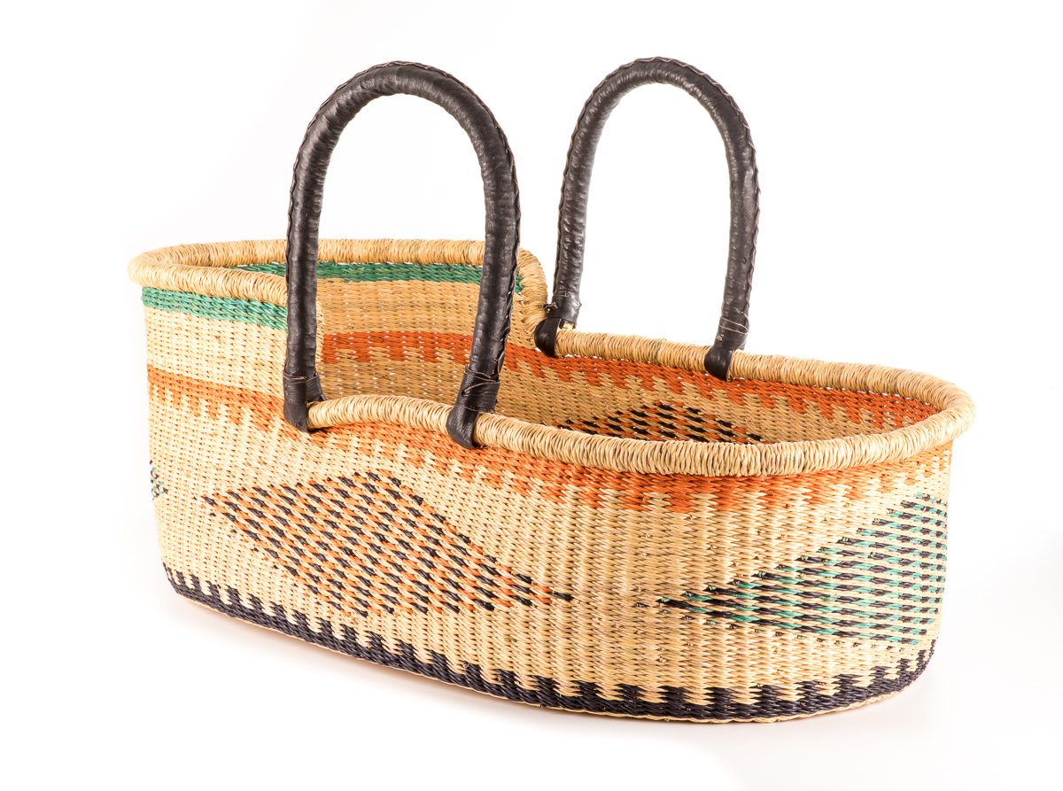 The weavers who produce these Moses baskets work as part of a talented weaving co-operative in Northern Ghana. The majority of these weavers have been taught the age-old art of basket weaving from their own mothers and fathers. Agricultural work is the basis of most weavers’ incomes, but prolific drought makes it increasingly difficult for families to make ends meet. Basket weaving, and producing these exquisite woven Moses baskets, empowers women and men with the opportunity to earn a valuable second income.