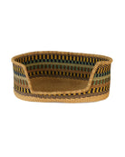 Sporting lovely blue, brown and yellow stripes against a natural grass base, this beautiful handwoven dog basket will quickly become your medium-sized dog’s favourite place to bed down for the night – or day!