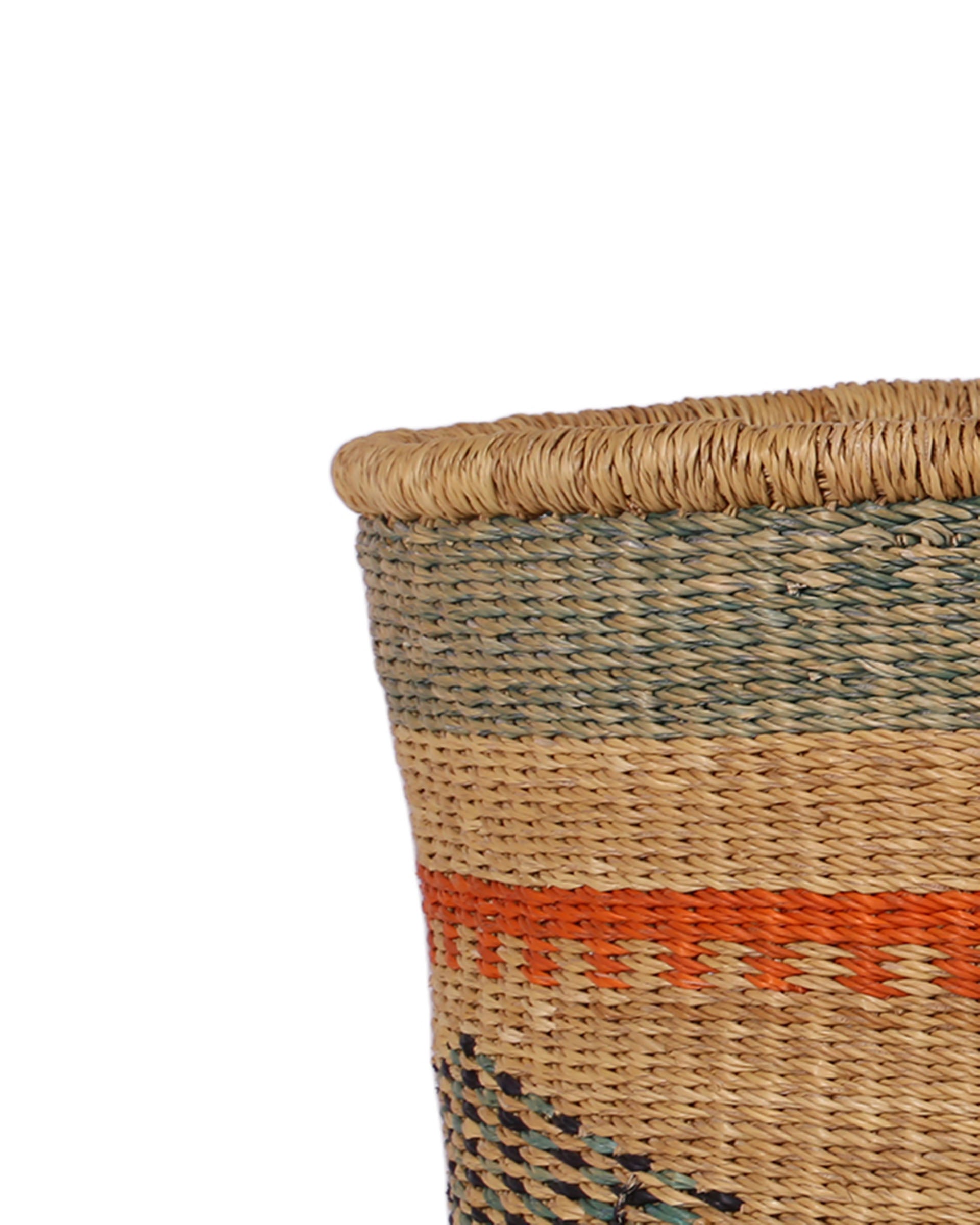 All of our baskets are exquisitely handmade in remote rural corners of Africa using natural materials, one piece at a time, with no two baskets the same. Although every effort is made to create only the best product, there may be natural blemishes or bumps and curves in places, as well as patches of dirt that can be sometimes noticed on the recycled wool sisal mix baskets. These should not be misconstrued as flaws, but are what make each basket a handmade product, charming and unique.