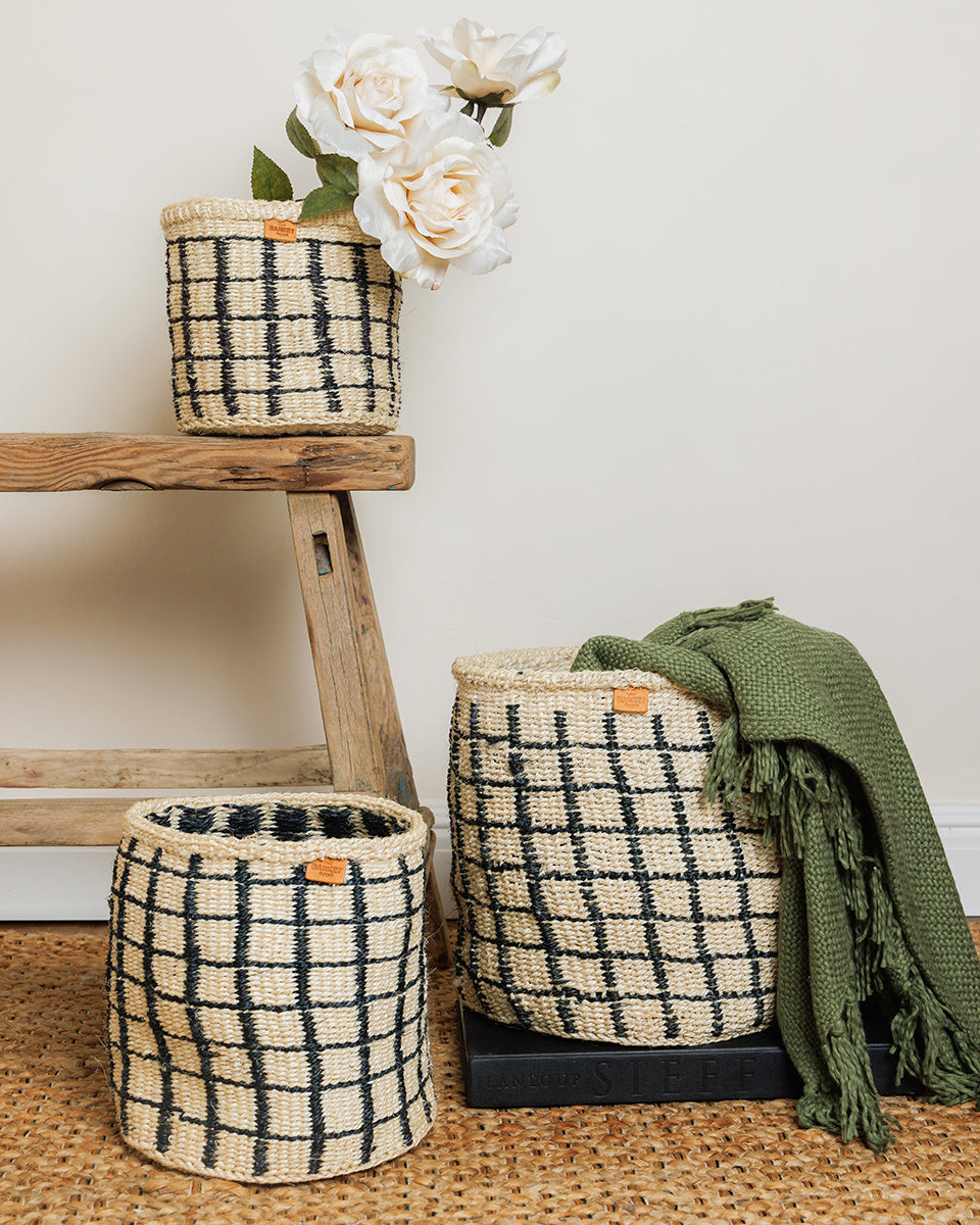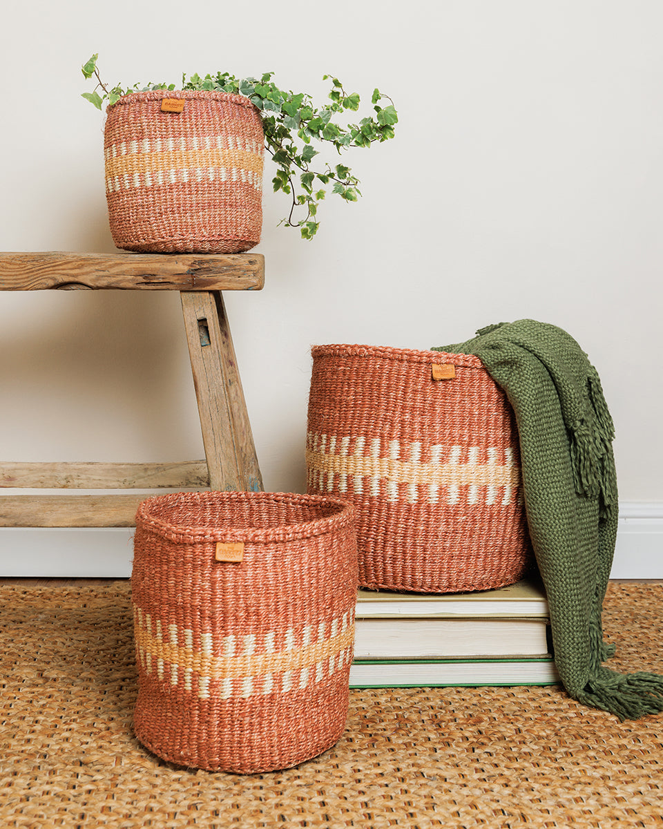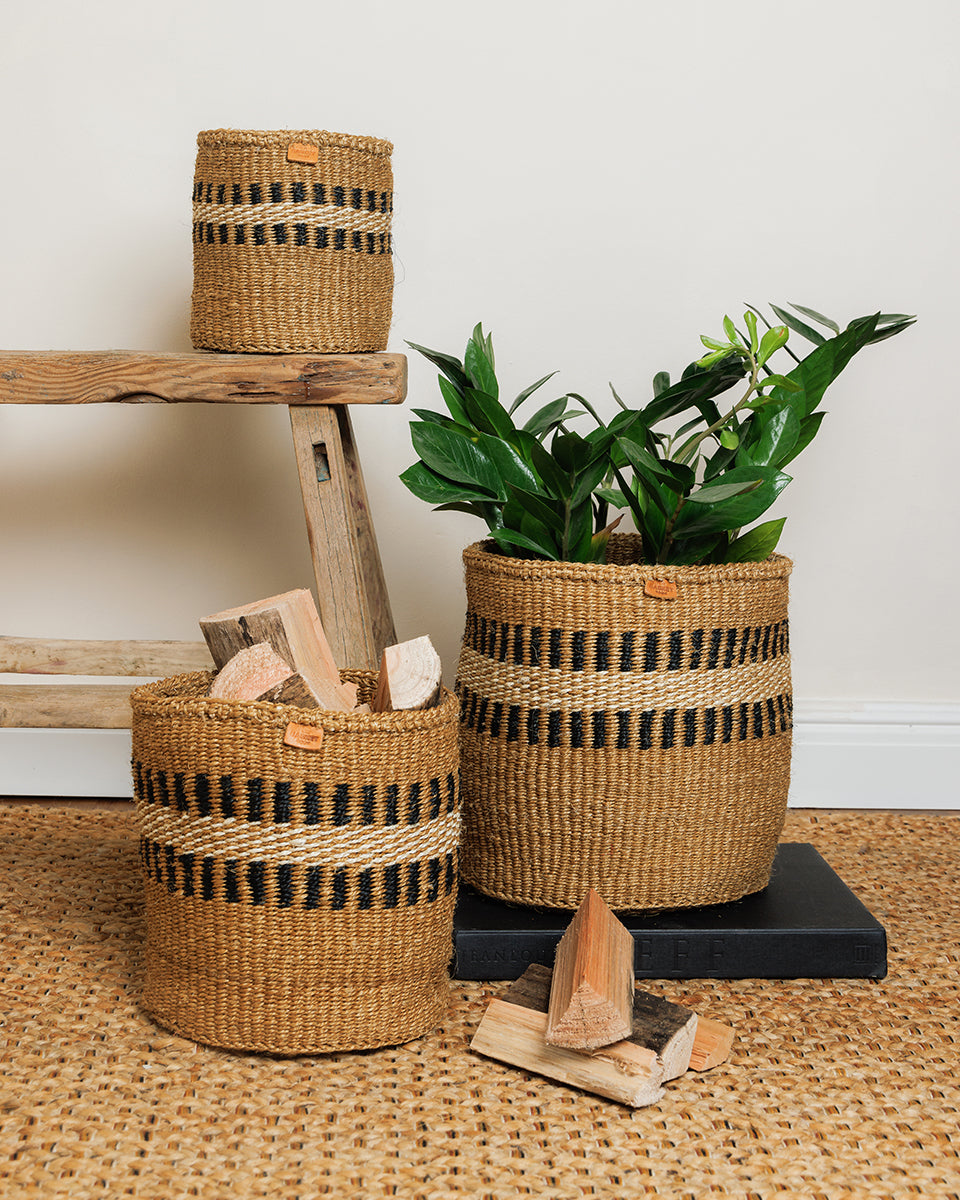We've added on trend check and pinstripe baskets to some of your striped favourites for this ultimate collection of colourful handwoven baskets, made in Africa. Available in three different sizes and hand woven from local sisal grass, these natural woven baskets make beautiful flower pots and large planters as well as stylish toy baskets. Put these woven treasures to use as storage baskets all over the home - from the bathroom and the bedroom to the kitchen, the study, the living room and the nursery.
