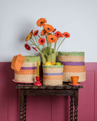 RELI: Orange, Purple & Green Stripe Woven Storage Basket