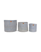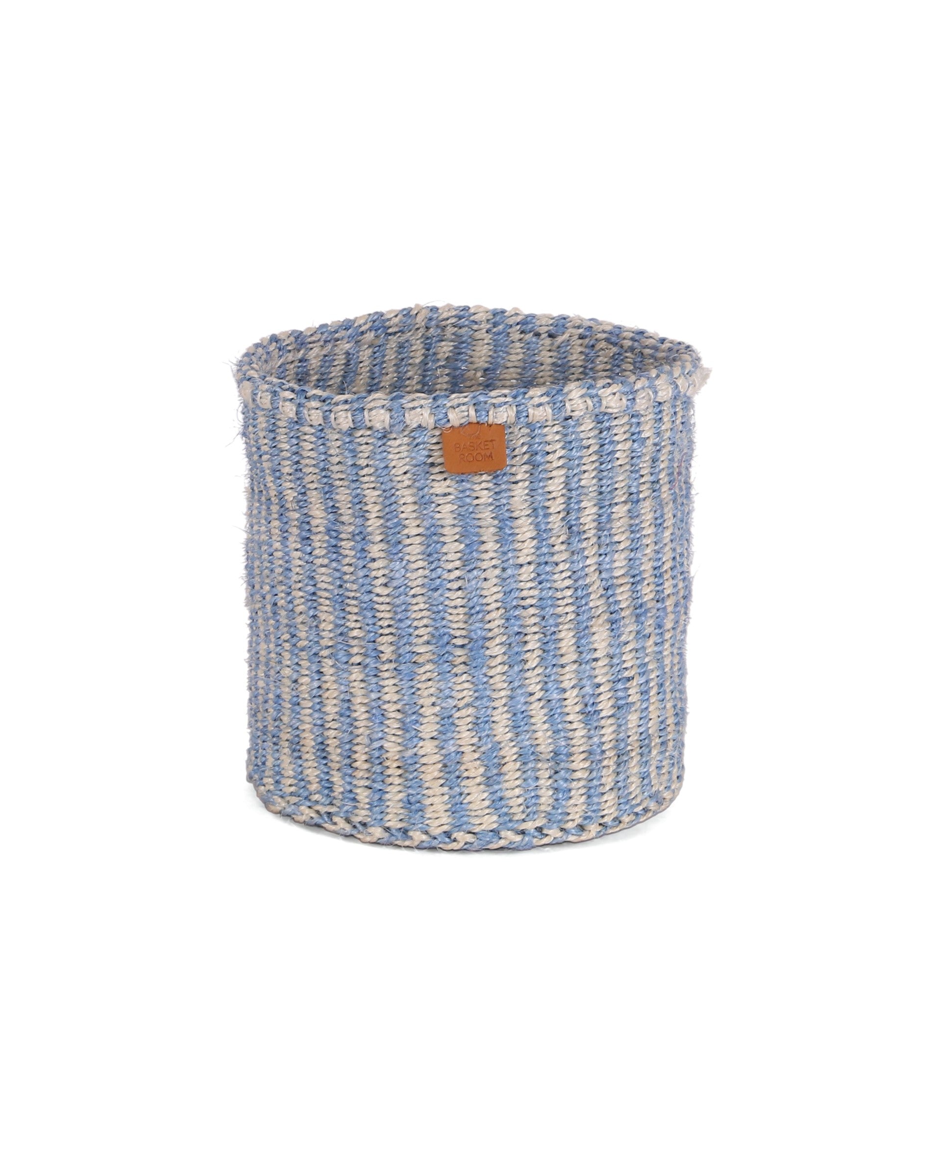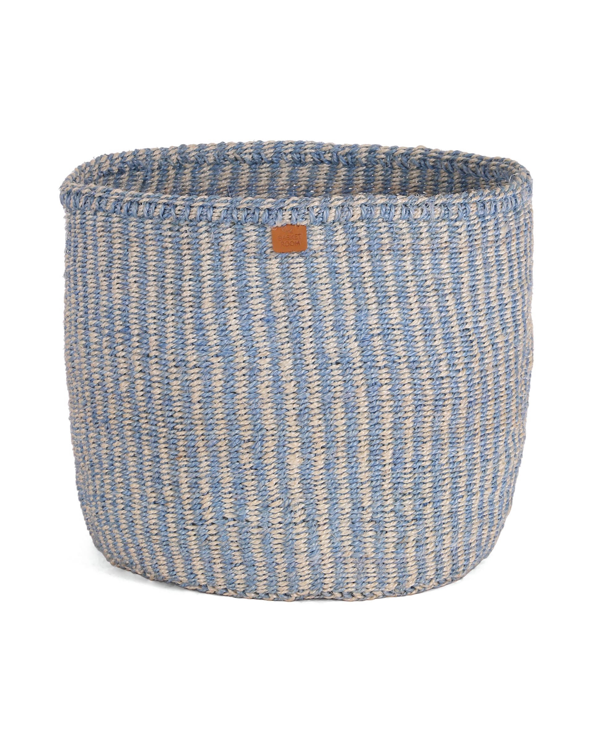 SEMA: Powder Blue and Natural Pinstripe Round Sisal Basket