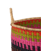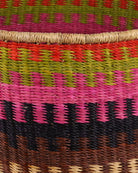 Makeover your home and declutter at the same time with the ADWENPA floor basket, in a large size. With geometric patterns in pink, green and black, this ethically-produced basket is perfect for filling with kindling and logs but it can also be put to use all over the home. Yours could become a laundry basket, toy basket, vegetable basket or blanket basket, for example! Every round storage basket in this collection is totally unique – made once and sold once.