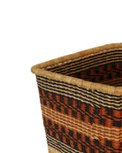 Our smart JUKWA square storage baskets sport Burnt Orange & Black against a natural undyed grass base. These stylish and robust storage baskets are hand woven in Northern Ghana and look superb all over the home.