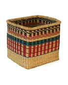 Our smart KRUOA square storage baskets sport Burgundy, Teal & Black against a natural undyed grass base. These stylish and robust storage baskets are hand woven in Northern Ghana and look superb all over the home.