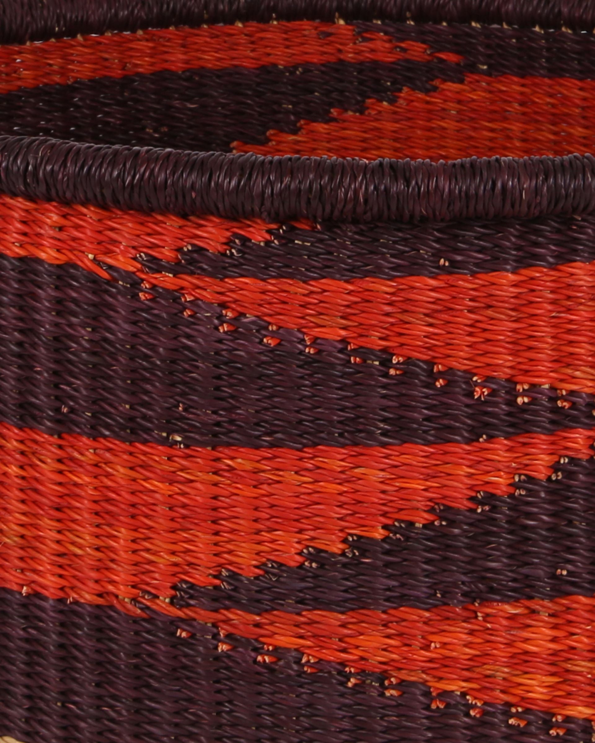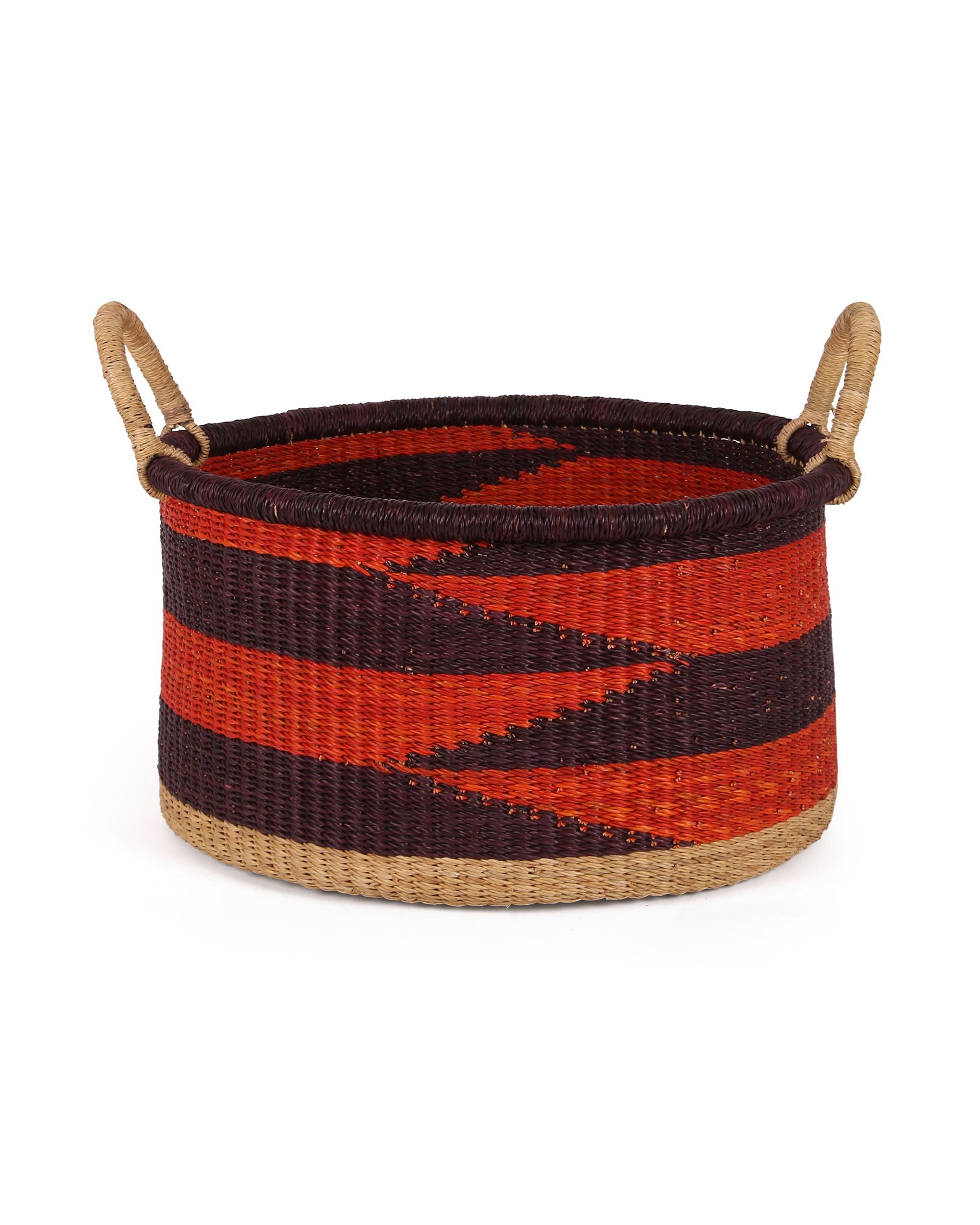 KWAMENA: Medium Orange and Burgundy Floor Storage Basket with Handles
