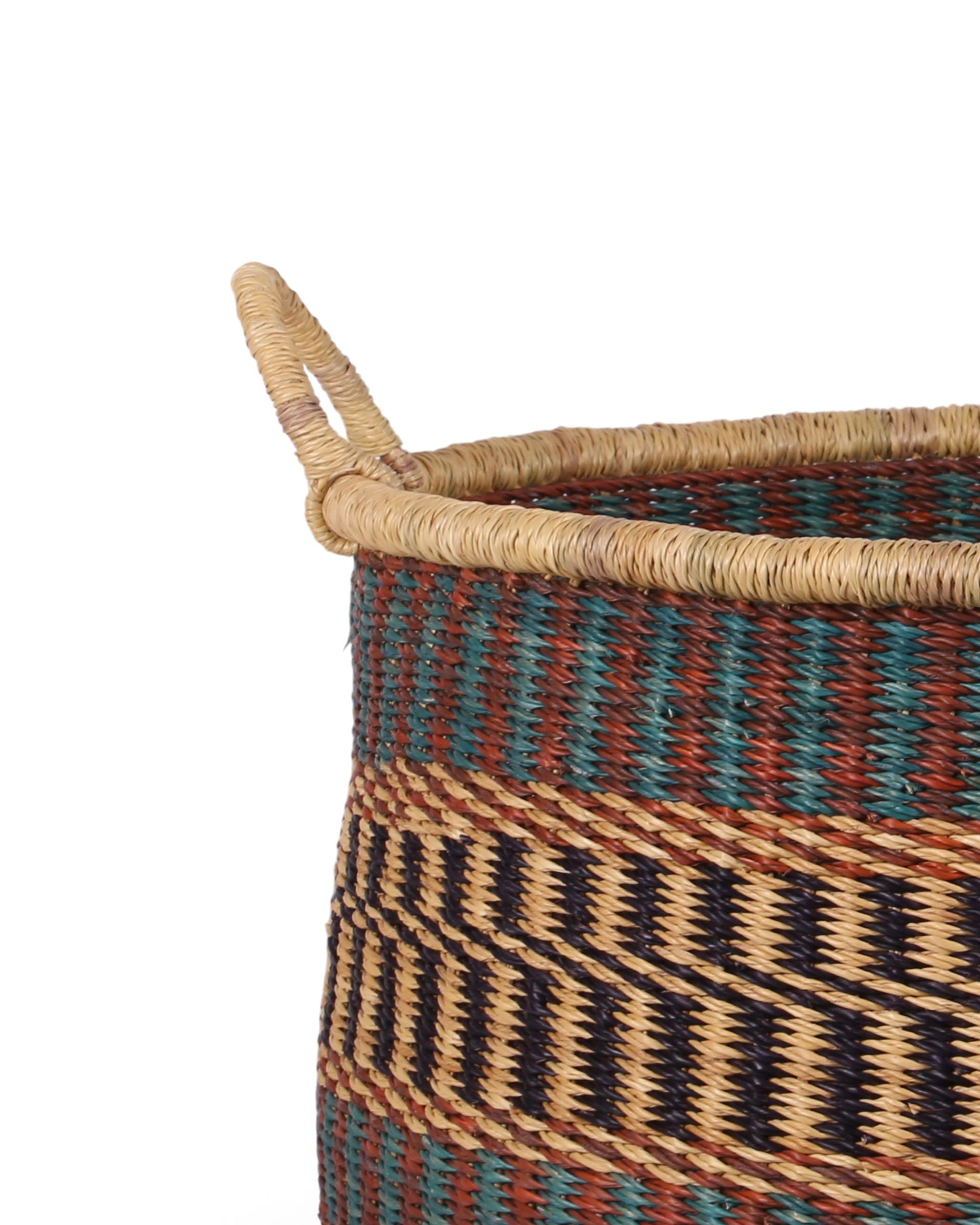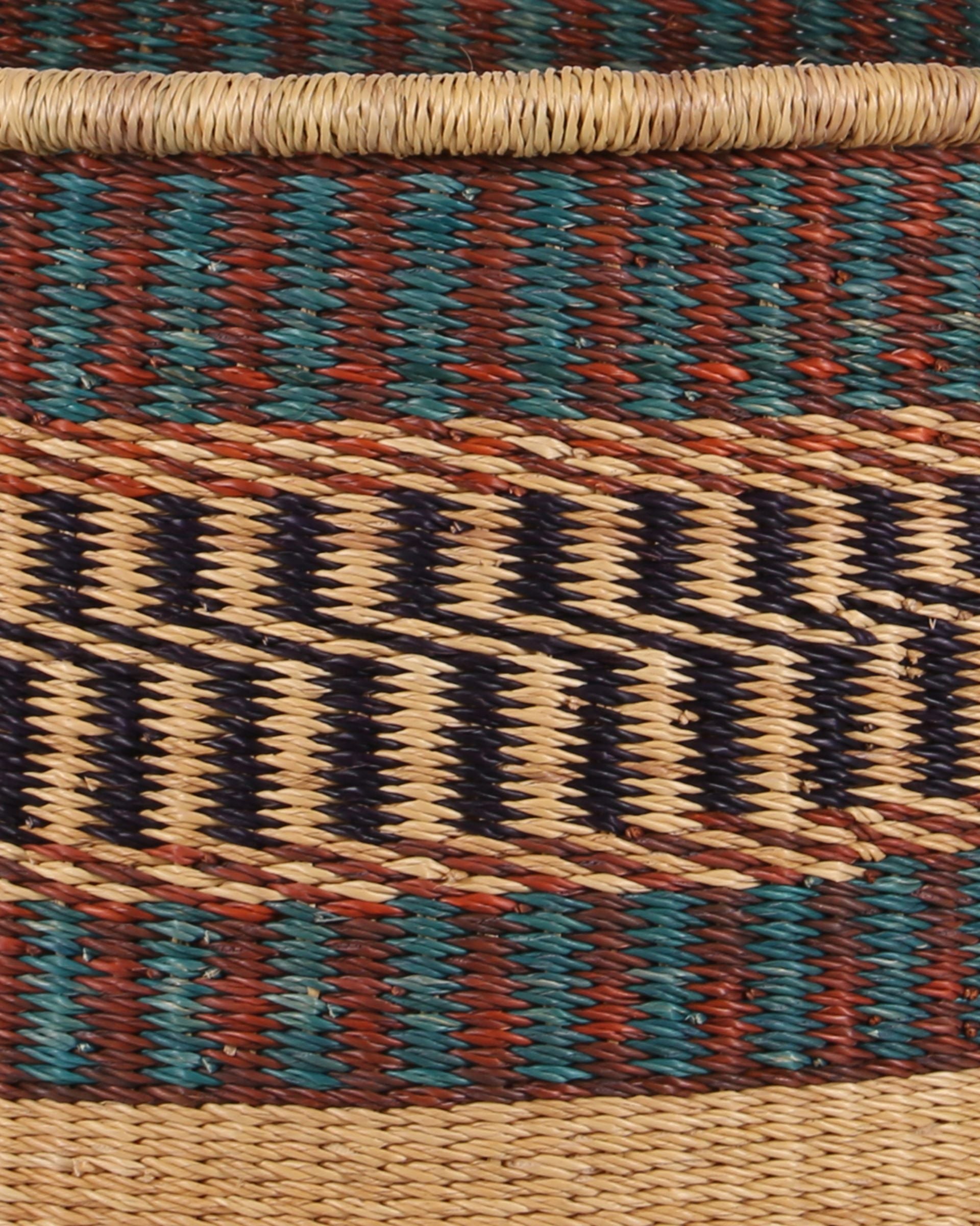 Woven from ethically-sourced veta vera grass in Northern Ghana, this colourful basket is made from robust veta vera grass – an indigenous raw material that’s sustainably sourced and perfect for producing durable baskets. The grass is hand-rolled before being woven by a skilled member of our partner weaving cooperative in Northern Ghana.