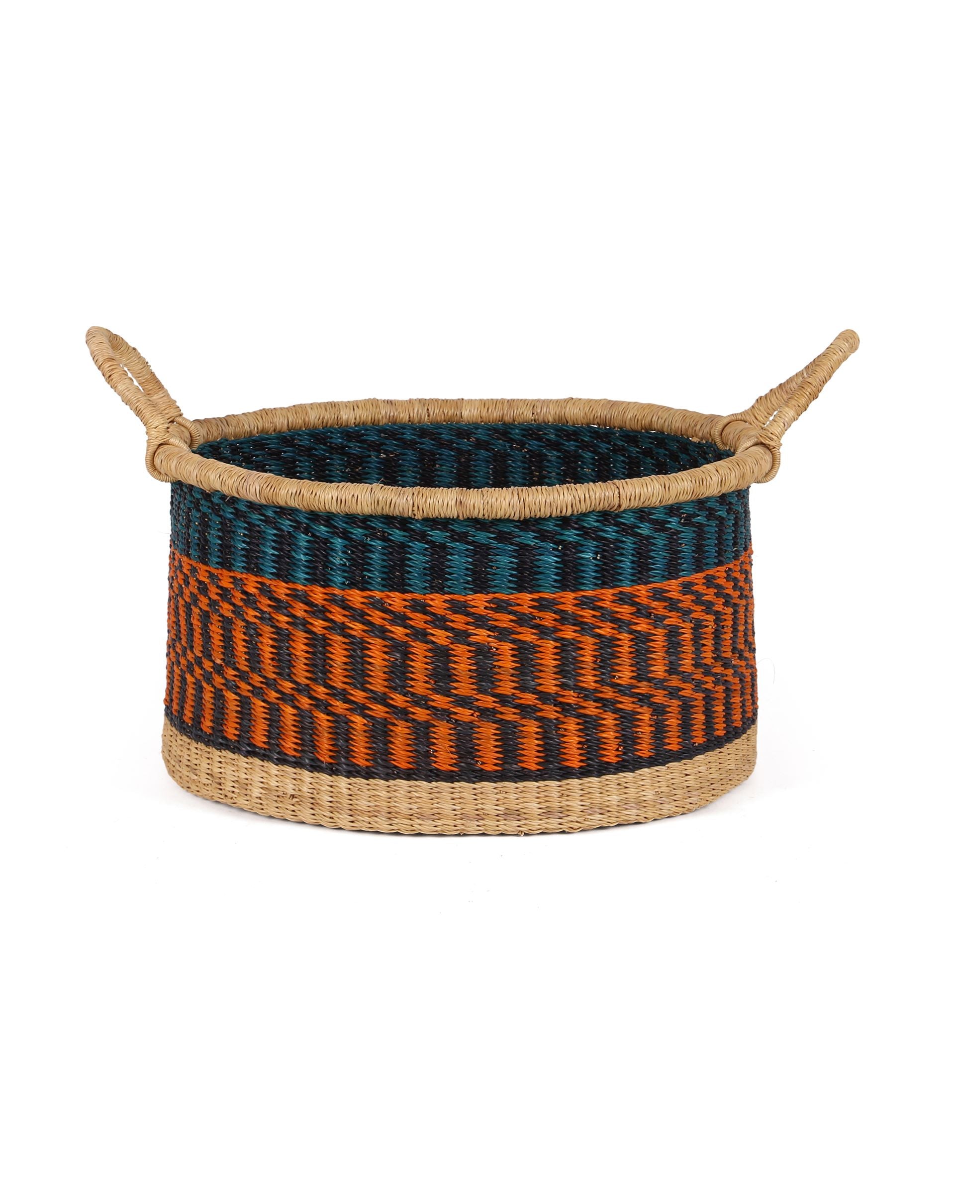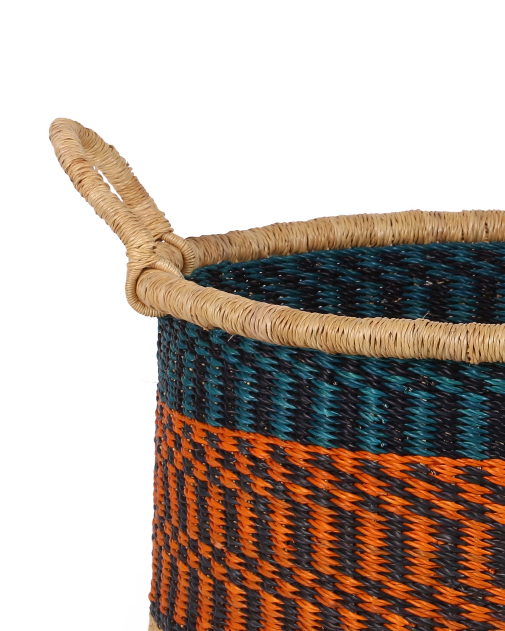 MANORGBE: Small Orange, Teal and Black Floor Storage Basket with Handles