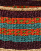 Declutter and bring a splash of Ghanaian colour to your home with the MKRUMAH floor basket, in a medium size. With tribal patterns in purple, teal and orange, this basket is perfect for storing kindling and logs but can also be put to use all over the home – as a laundry basket, toy basket, vegetable basket, blanket basket – the possibilities are endless! Every round storage basket in this collection is totally unique – made once and sold once.
