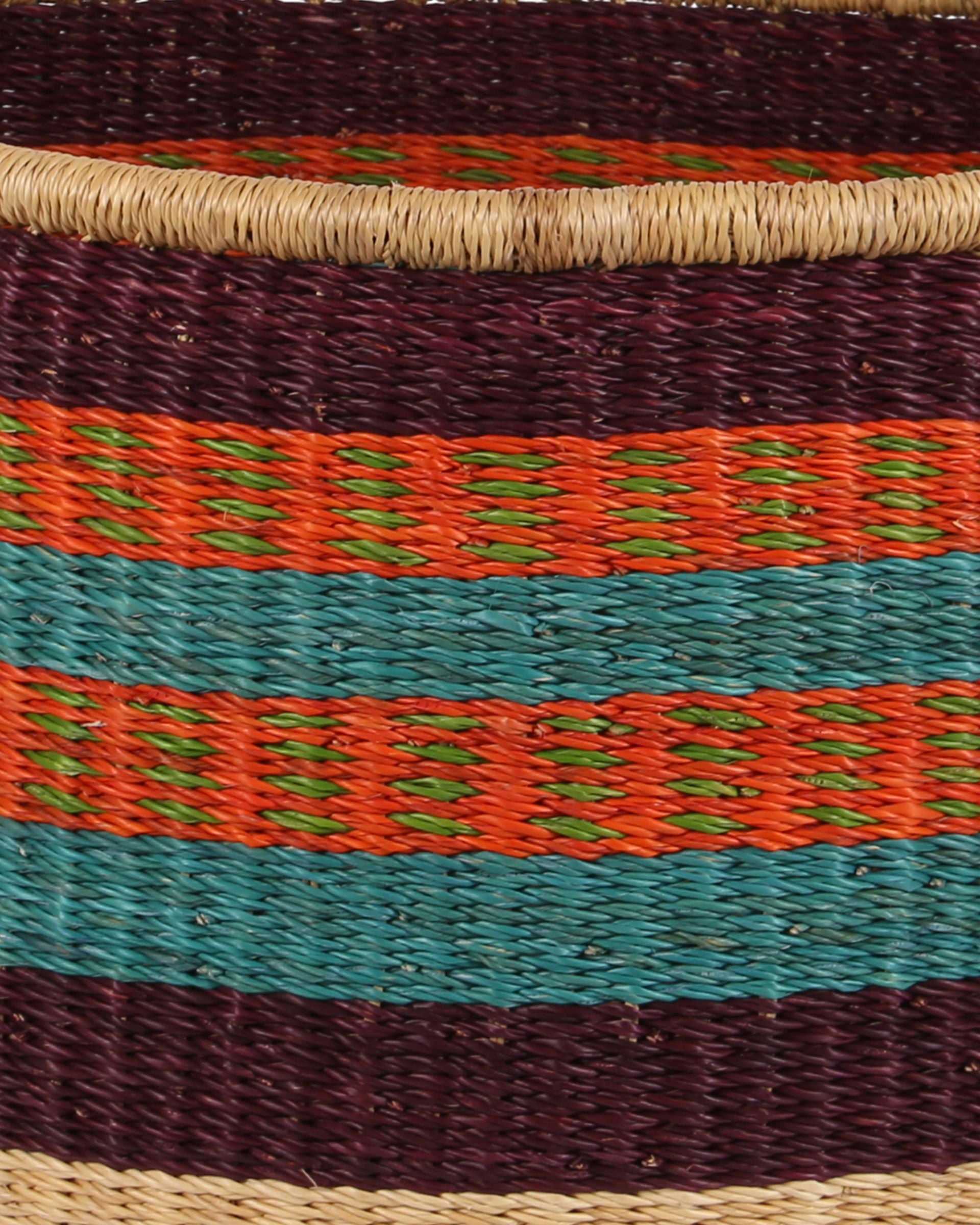 Woven from ethically-sourced veta vera grass in Northern Ghana, this colourful basket is made from robust veta vera grass – an indigenous raw material that’s sustainably sourced and perfect for producing durable baskets. The grass is hand-rolled before being woven by a skilled member of our partner weaving cooperative in Northern Ghana.