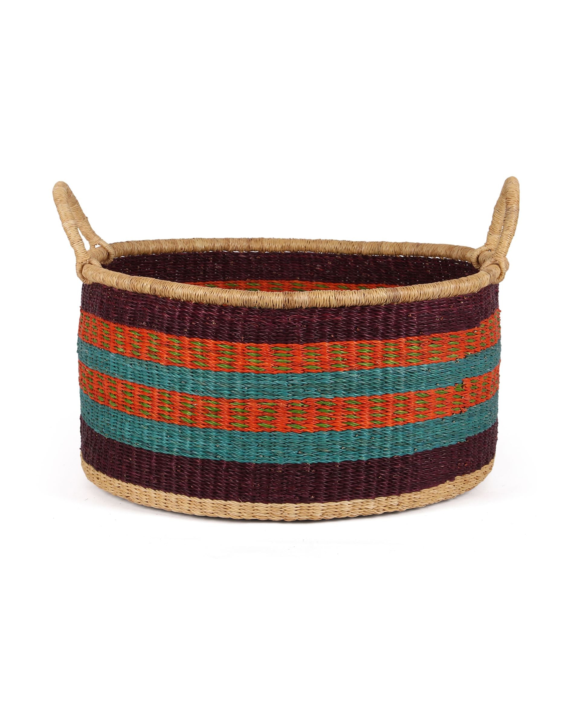 MKRUMAH: Medium Purple, Teal and Orange Floor Storage Basket with Handles