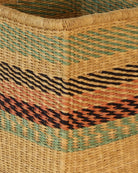 Each woven storage basket takes up to three days to complete, and is made from an indigenous Ghanaian grass called veta vera. The process is time-consuming: before weaving can begin the grass must be collected and split by hand, then hand-rolled and dyed. Only then can a weaver from our partner weaving cooperative begin her skilful work. These one of a kind baskets are handmade by the most talented weaving groups in Ghana, the weavers have complete creative freedom resulting in exquisite designs that are only ever made once.