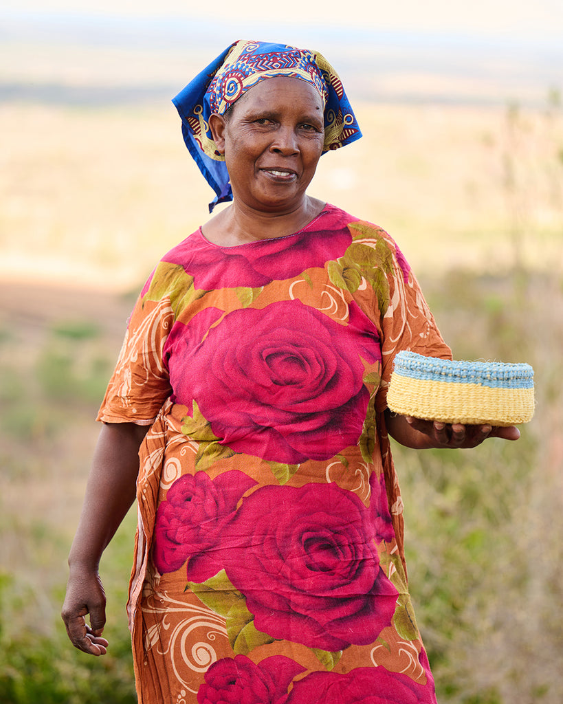 The Kenyan women behind these natural woven baskets all learned to weave baskets from their mothers and grandmothers, and practise this traditional craft within a small weaving group in rural Kenya. We visit these women as often as we can, and have built a strong bond with the weavers and their chairlady, Madam Dorcas over the years. Where once these weavers would undertake the long journey to Nairobi to sell their work at markets, The Basket Room now places regular orders with them, enabling these women to work more efficiently and sustainably from home.