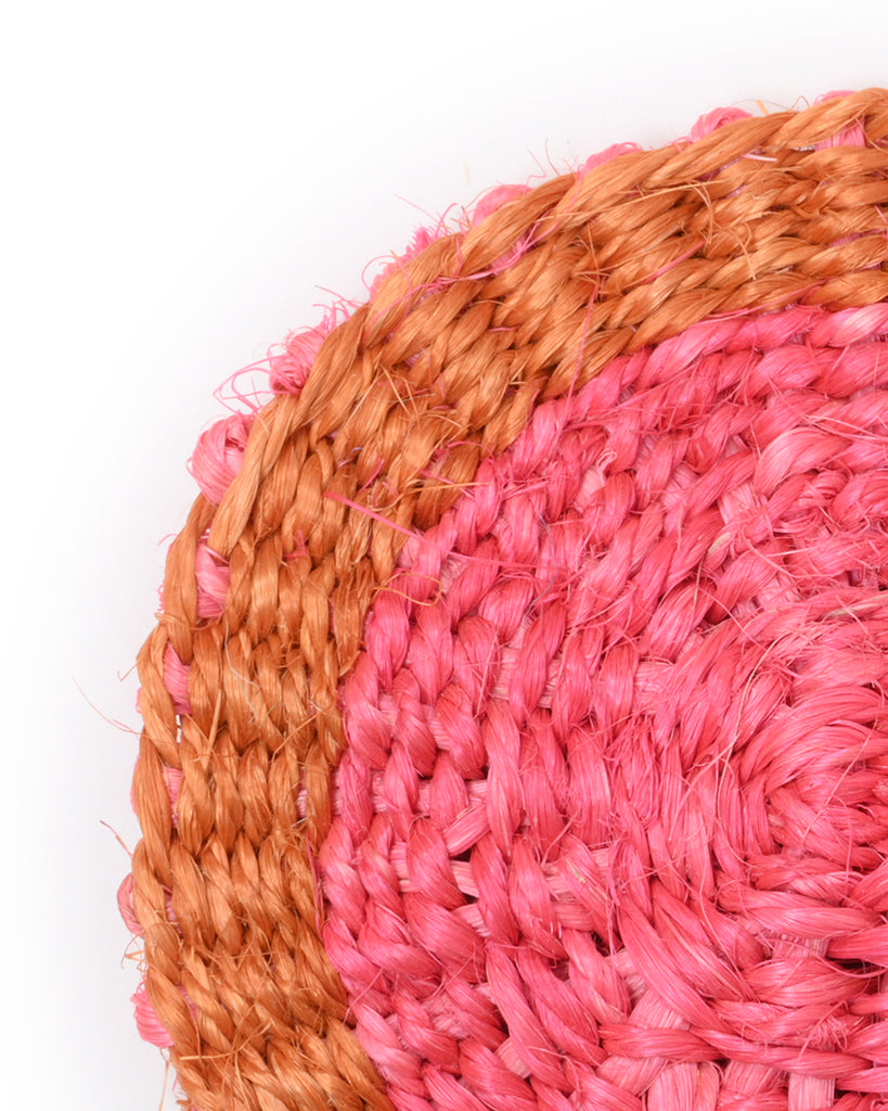Bring a splash of colour to the table with our ZUBERI handwoven sisal placemats and coasters: bright pink in colour with a bold nu orange rim. These sisal placemats will bring a sense of occasion to your lunches and brunches, al fresco suppers and family gatherings. Mix and match colours for an eclectic table or opt for matching sets: there are so many beautiful combinations to be found in this sisal tableware collection.
