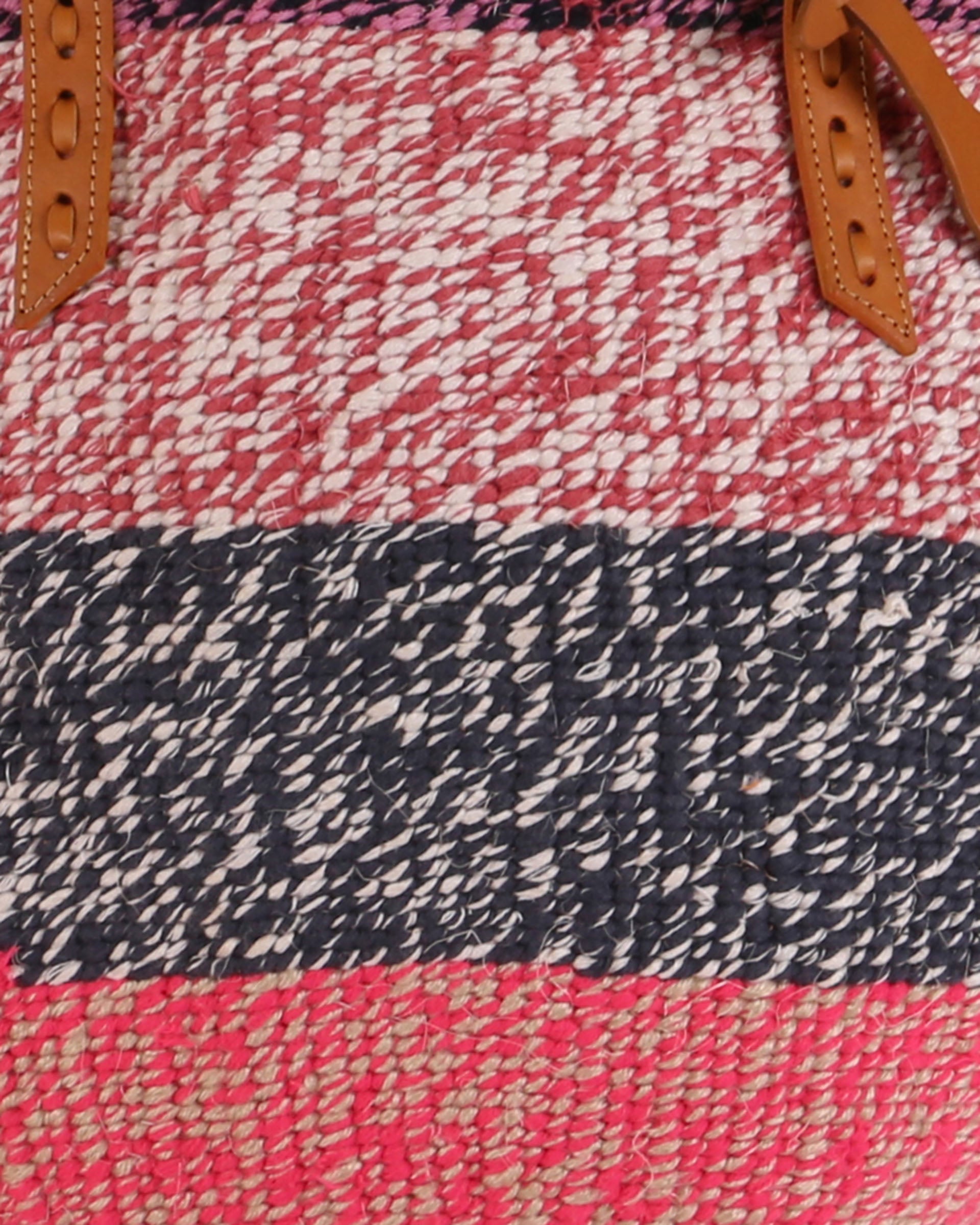 Meet colourful PESA: a one-of-a-kind Red, Black & Pink basket bag, made from recycled woolly jumpers. This woven basket bag is a truly Kenyan celebration of sustainable style. We are proud to partner with women working within several weaving cooperatives in Eastern Kenya and Nairobi to produce these baskets.