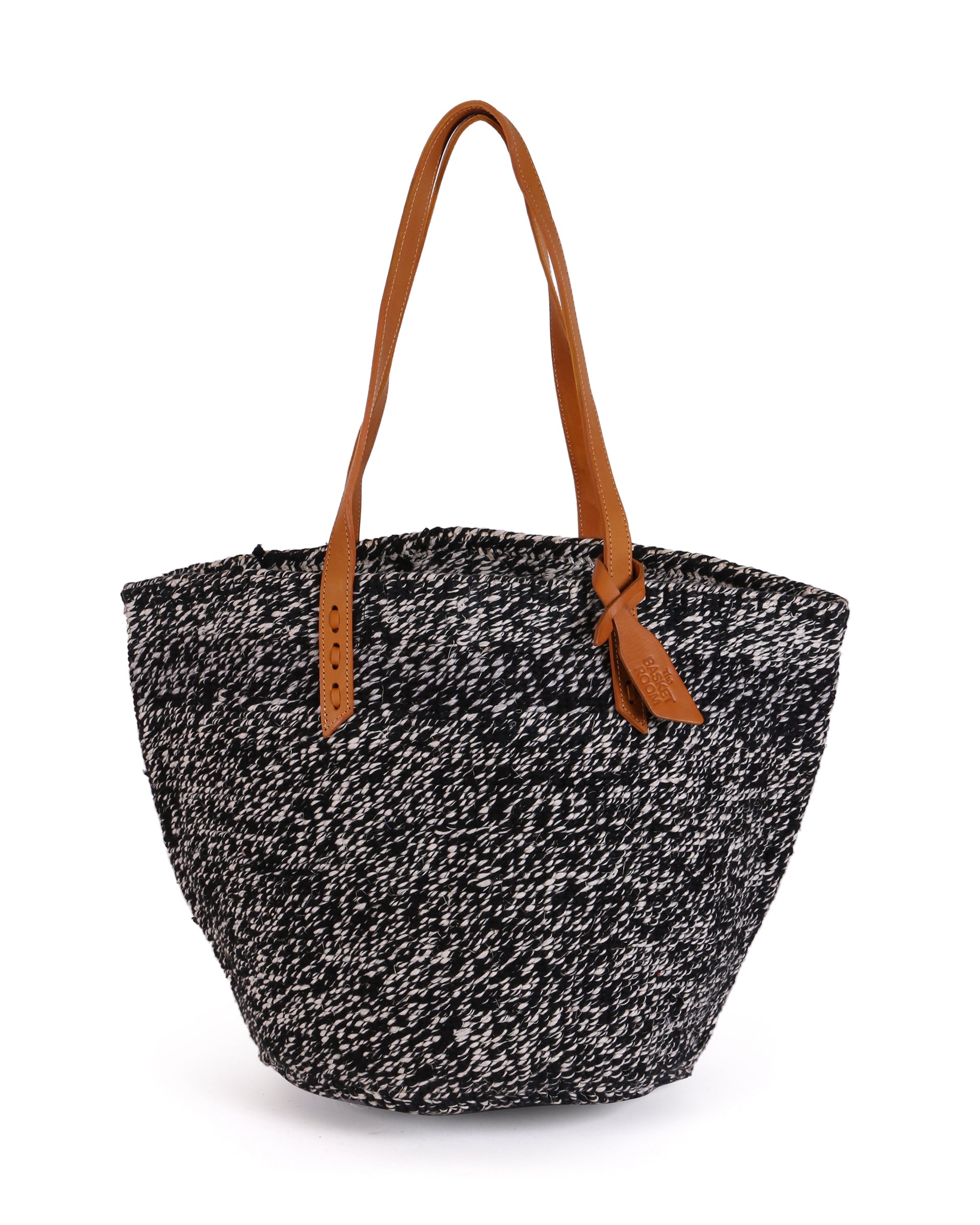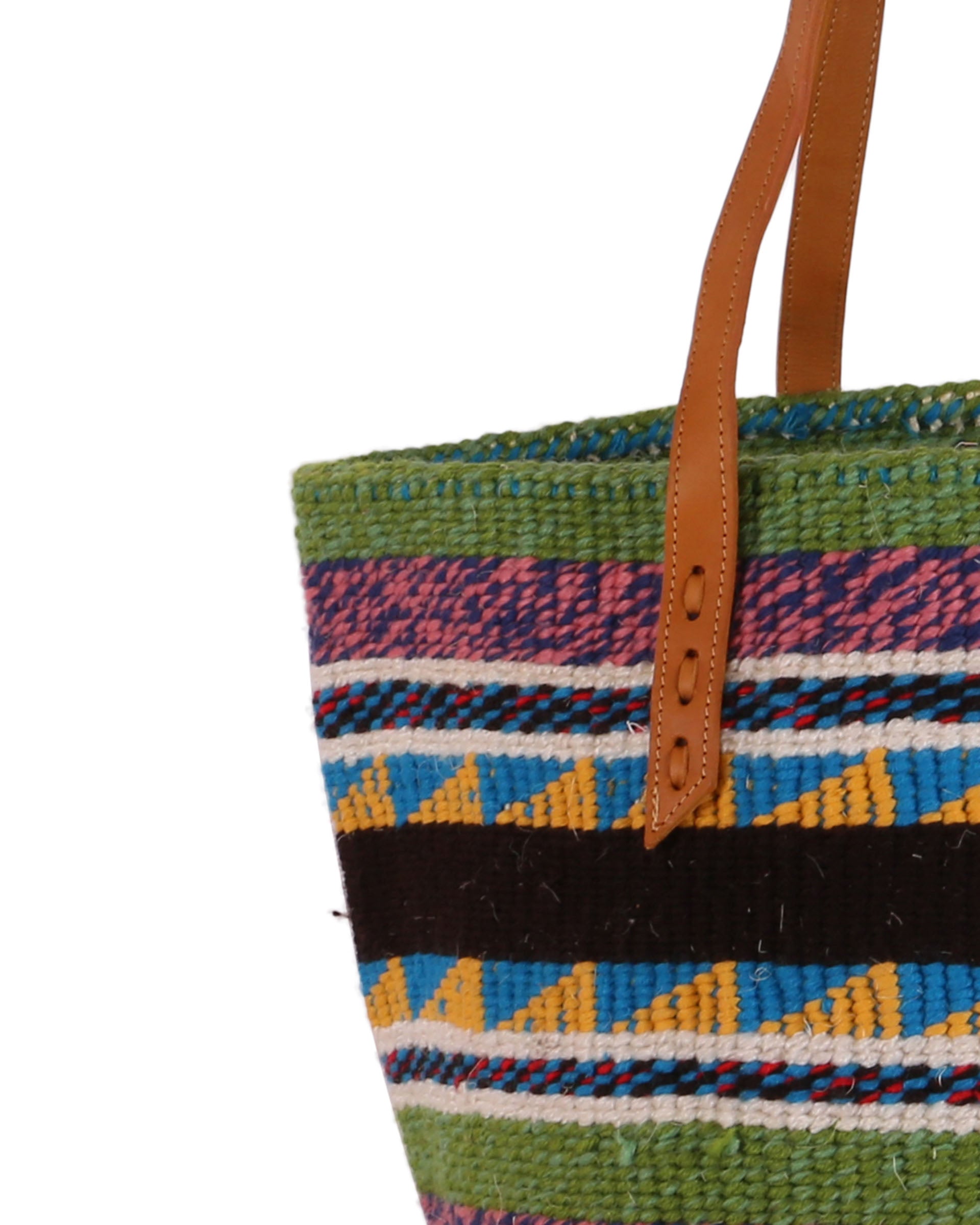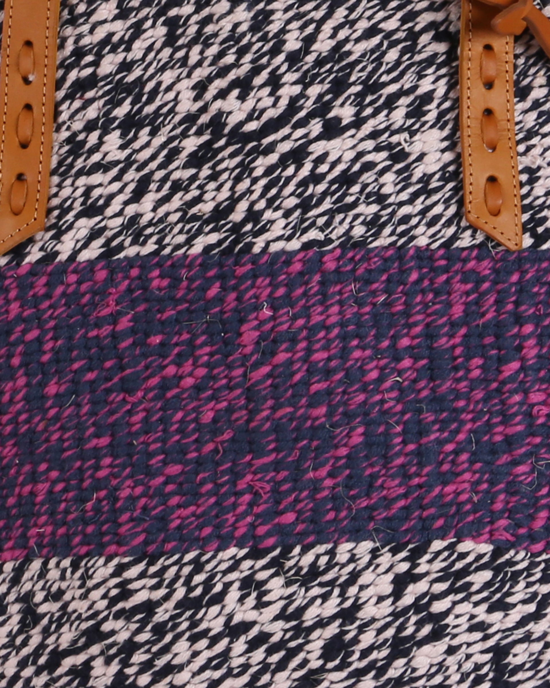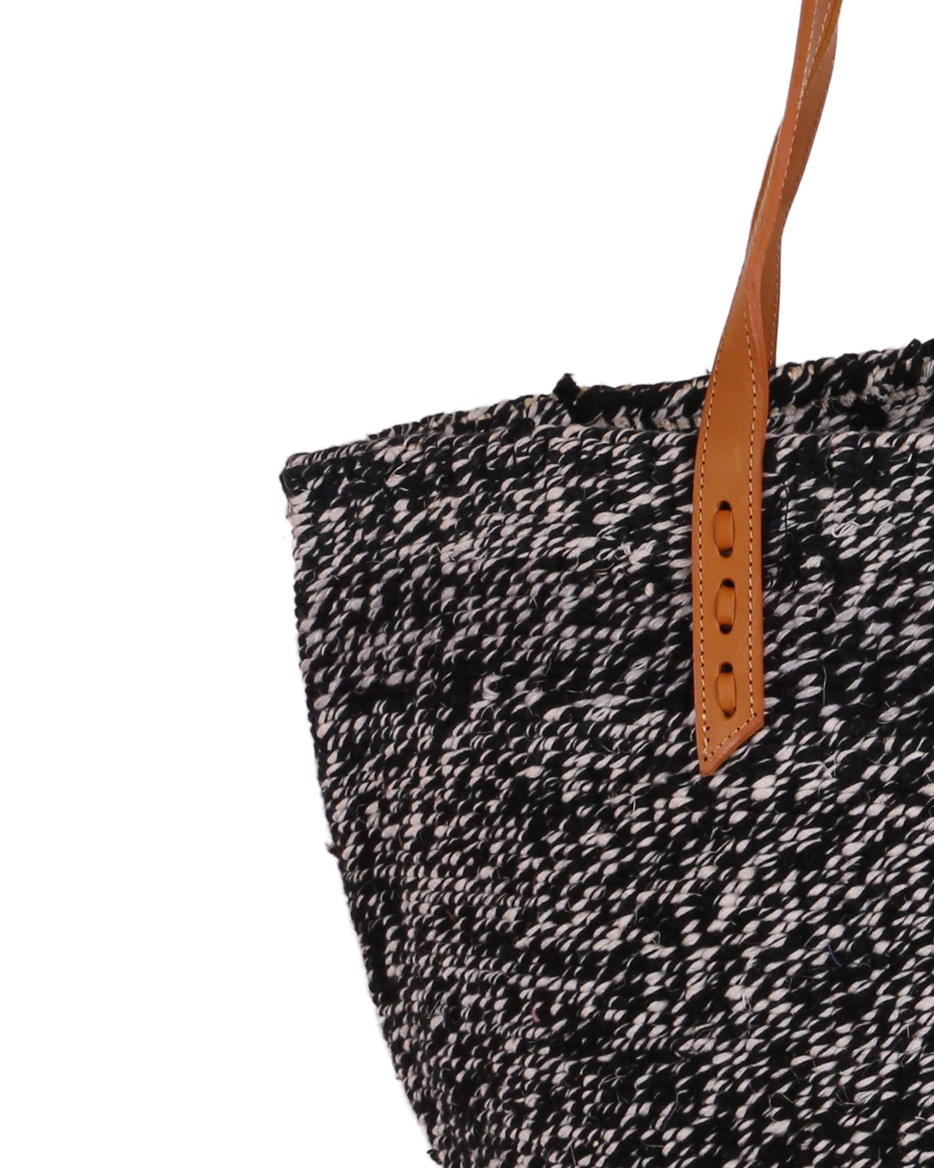 These basket bags are made from wool from second hand jumpers, woven around local sisal grass. The weavers regularly visit the ‘gikombas’ (clothes markets) to select and purchase colourful woollen jumpers, which are washed and unravelled at home into separate balls of coloured wool – and then woven. The bags are finished in a local leather works, being fitted supple cow hide straps for carrying.