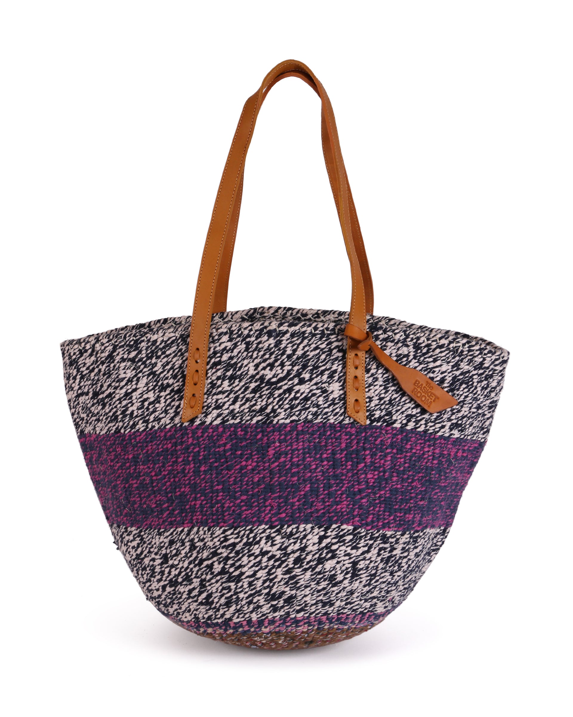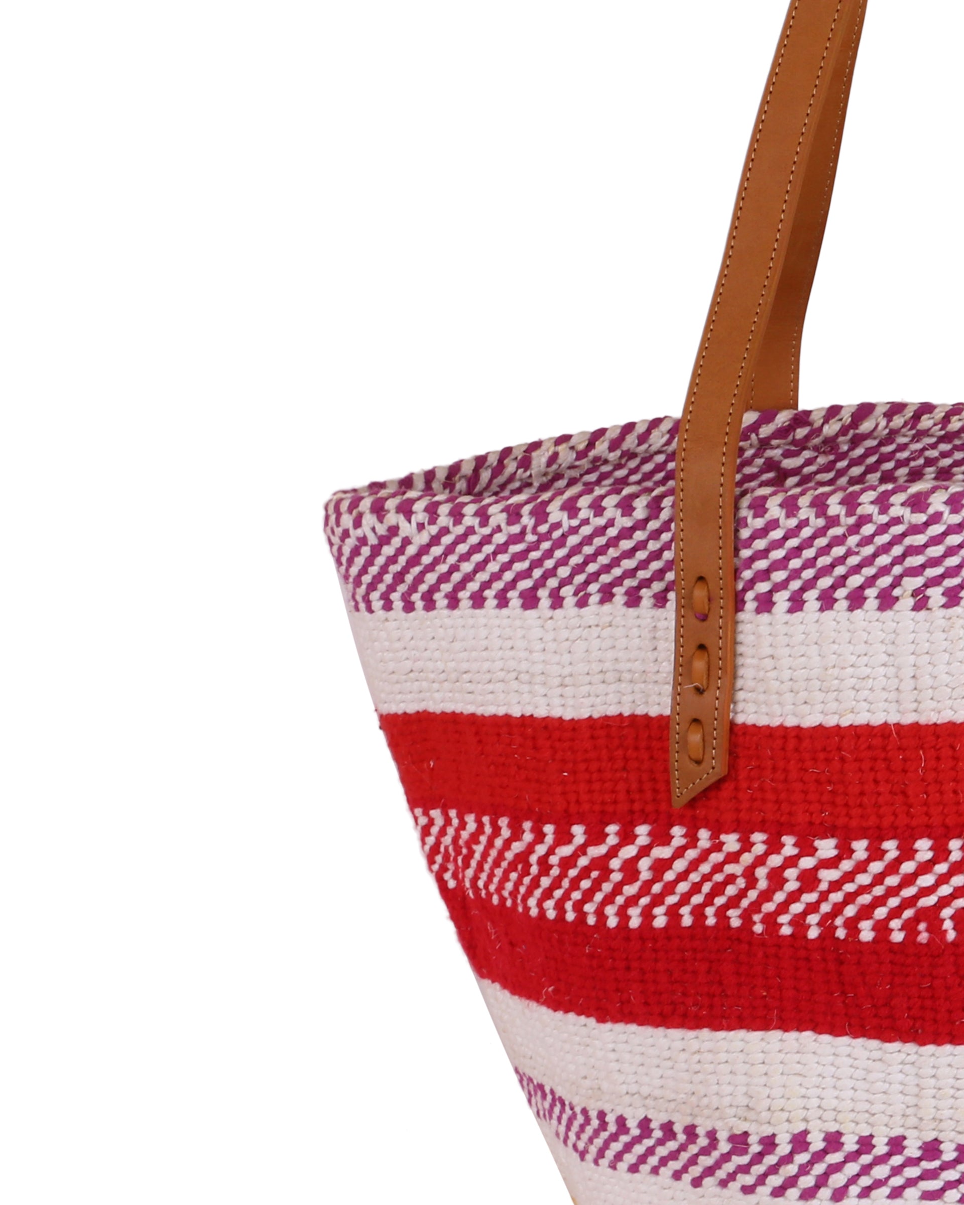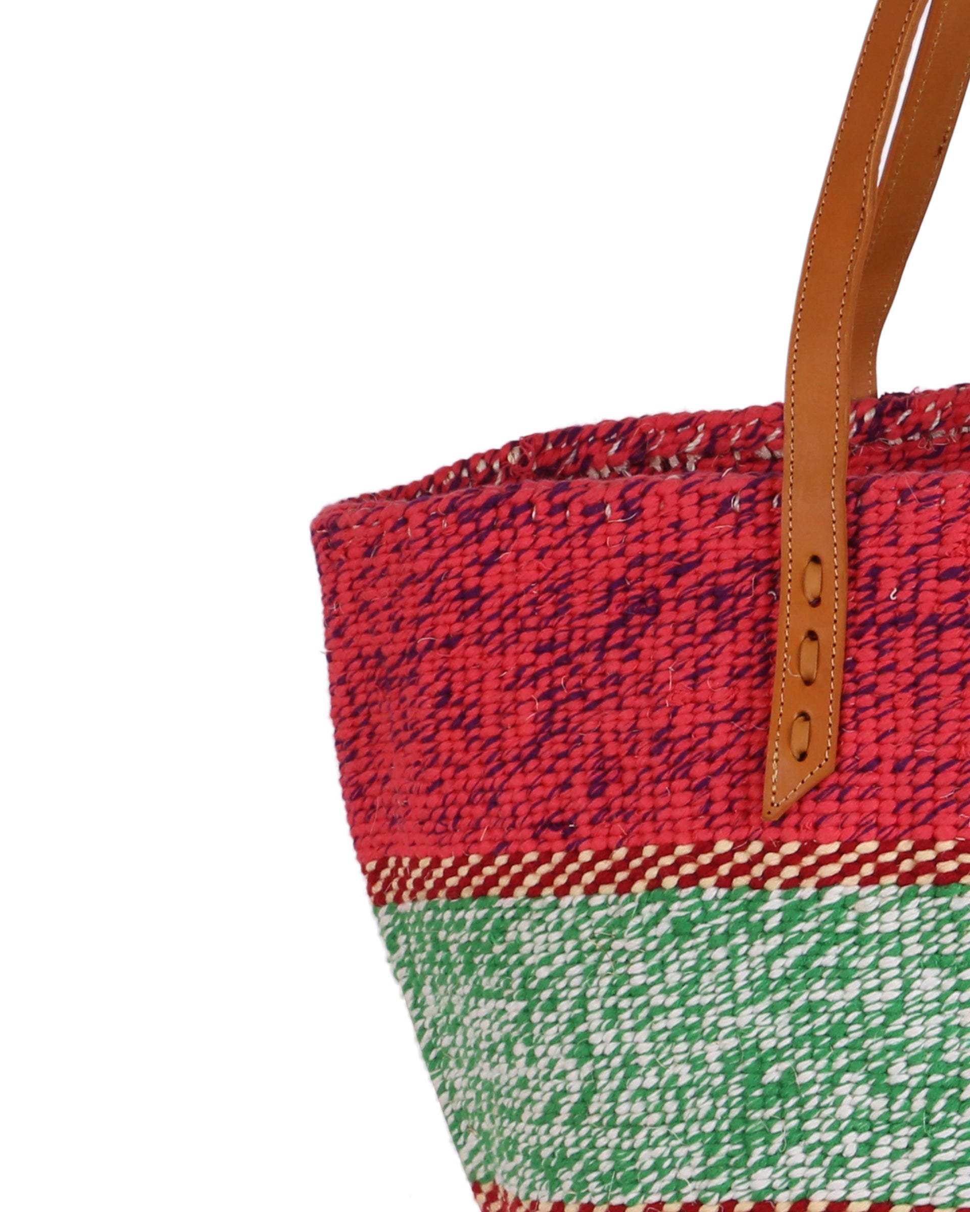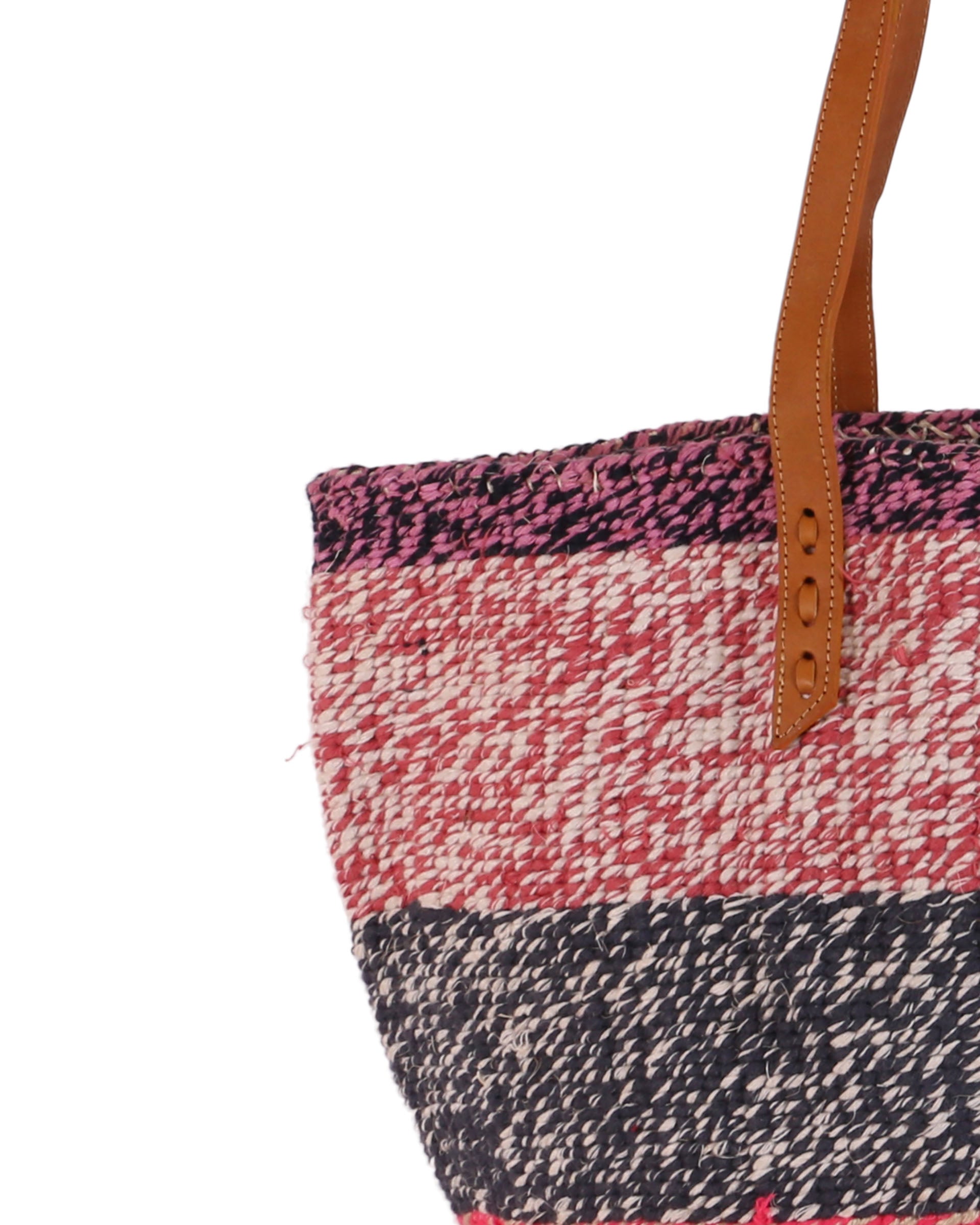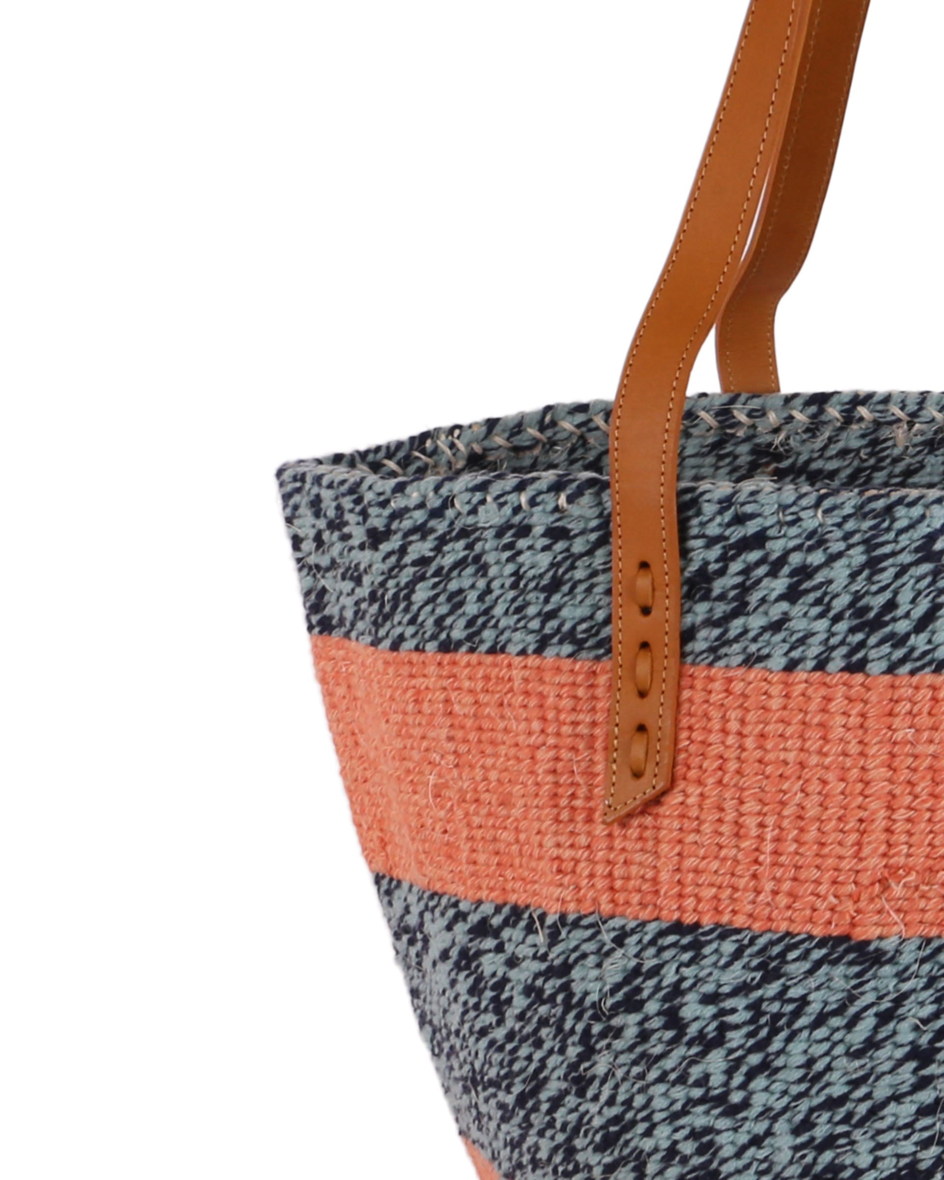 Our exquisite and ethical basket bags are inspired by tribal patterns and traditional Kenyan colourways, and hand woven by members of the Kamba tribe in Kenya. Each basket bag takes up to four days to complete before being sent to a local leather works to be fitted with beautifully supple cow hide straps.