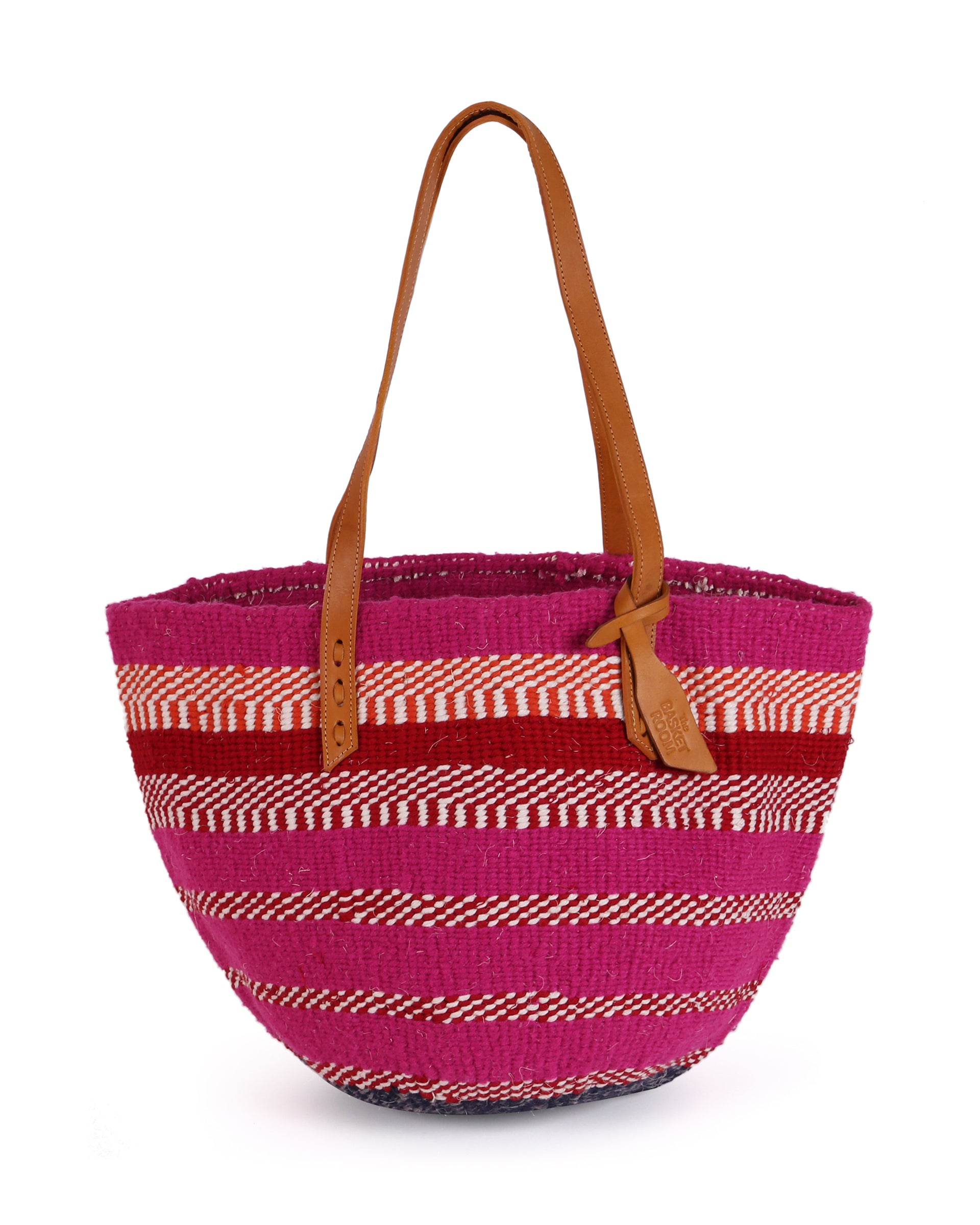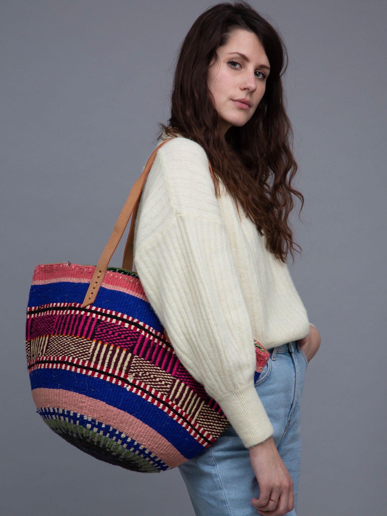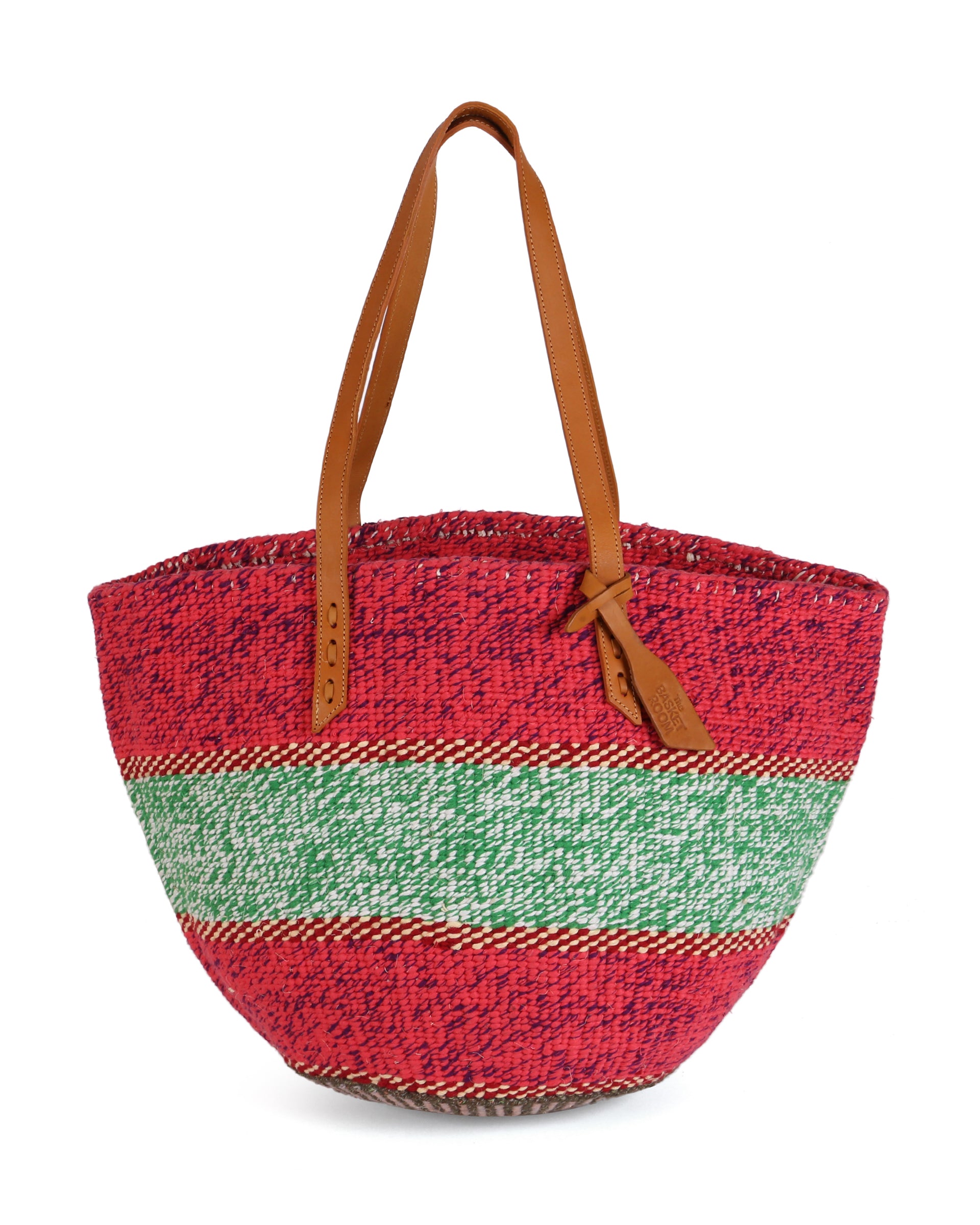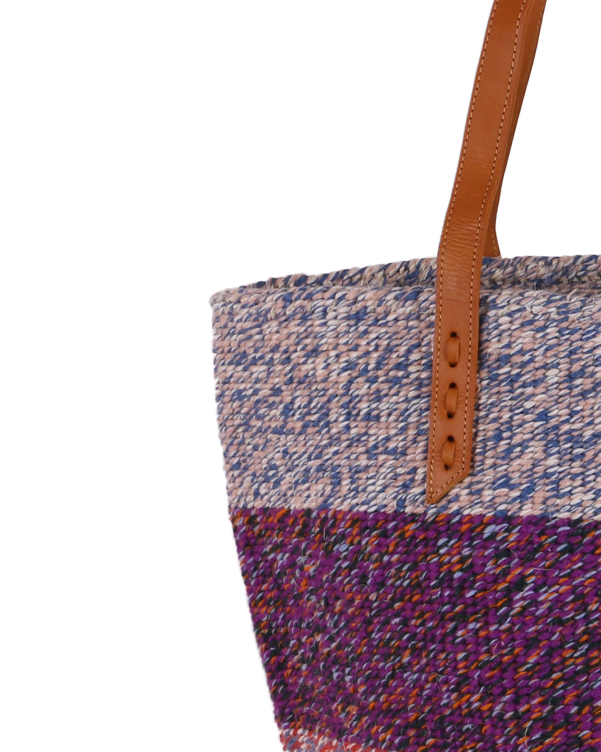 Our exquisite and ethical basket bags are inspired by tribal patterns and traditional Kenyan colourways, and hand woven by members of the Kamba tribe in Kenya. Each basket bag takes up to four days to complete before being sent to a local leather works to be fitted with beautifully supple cow hide straps.