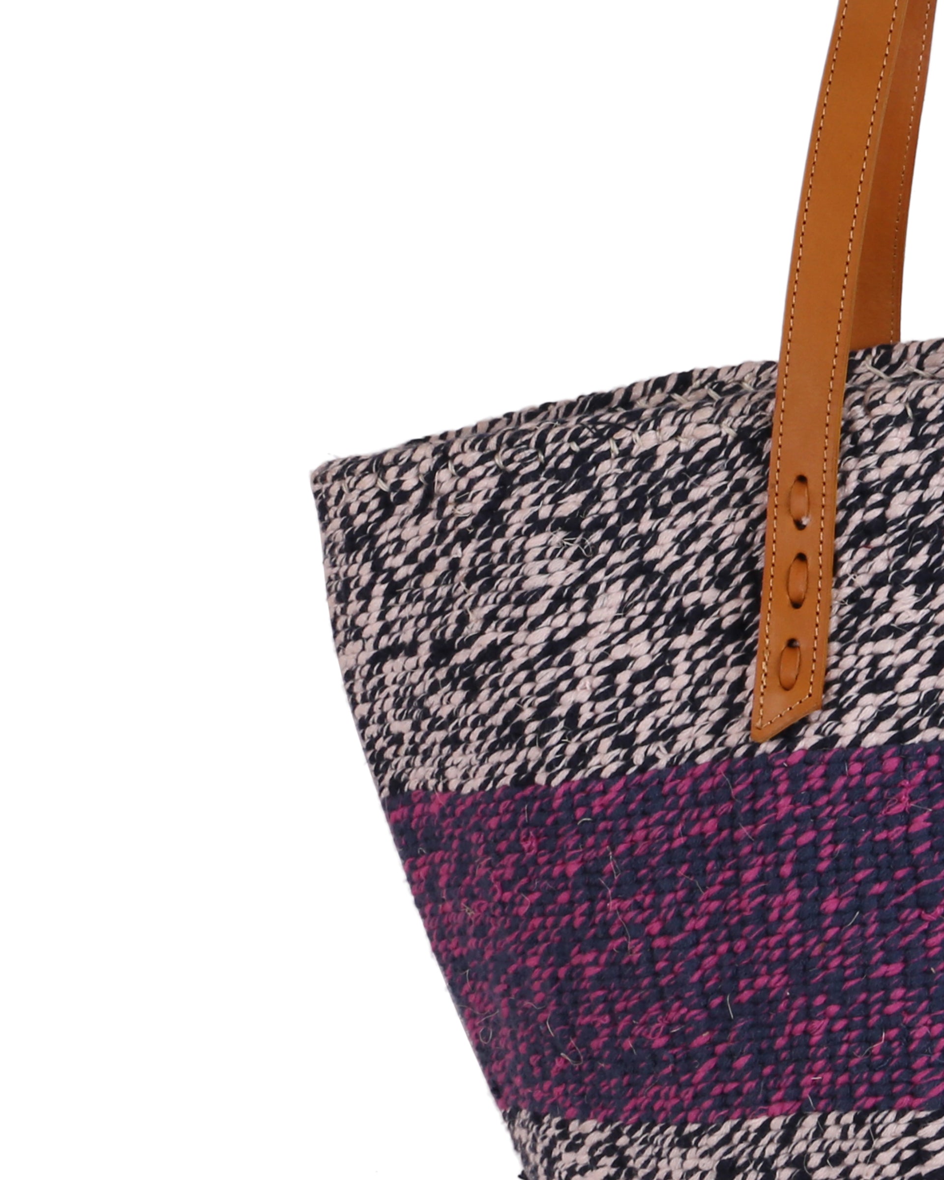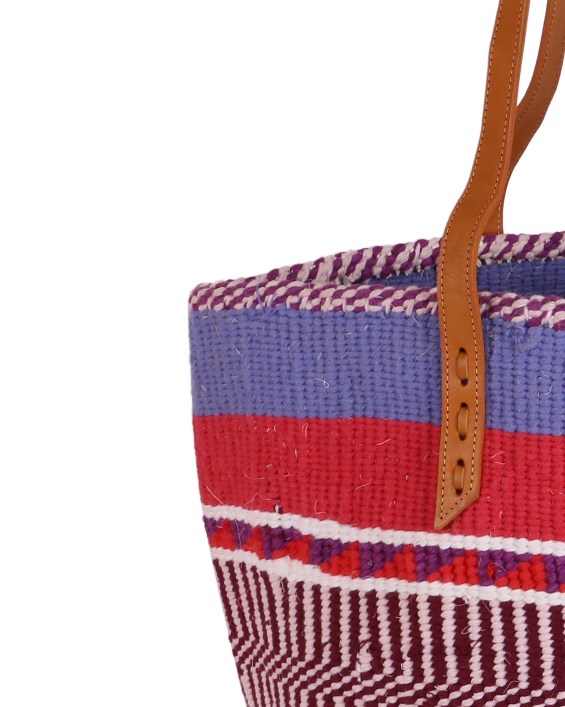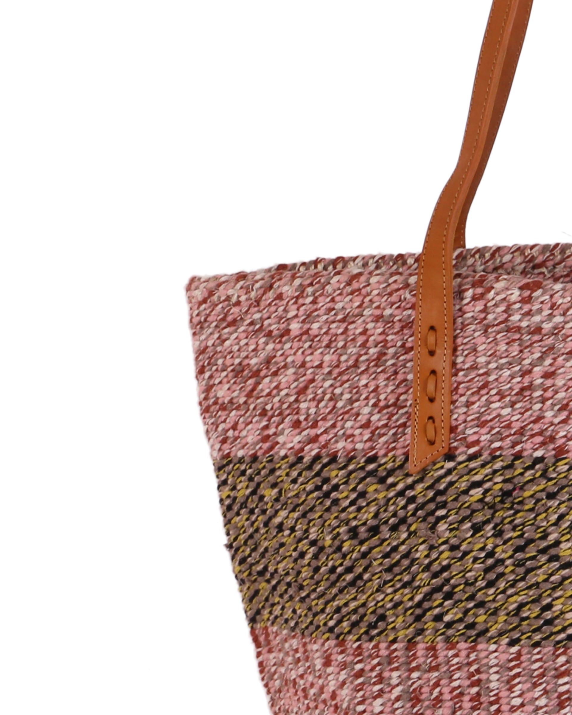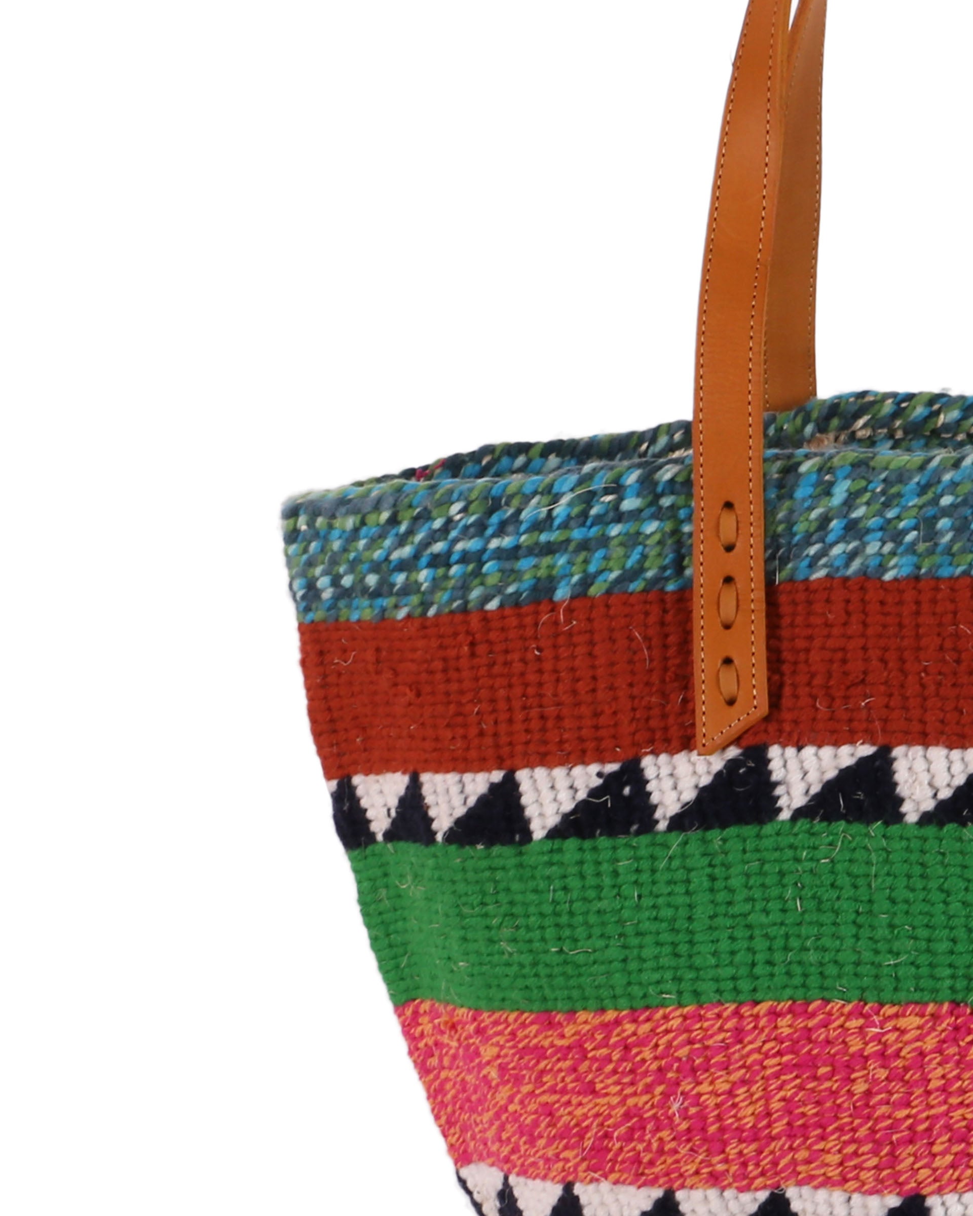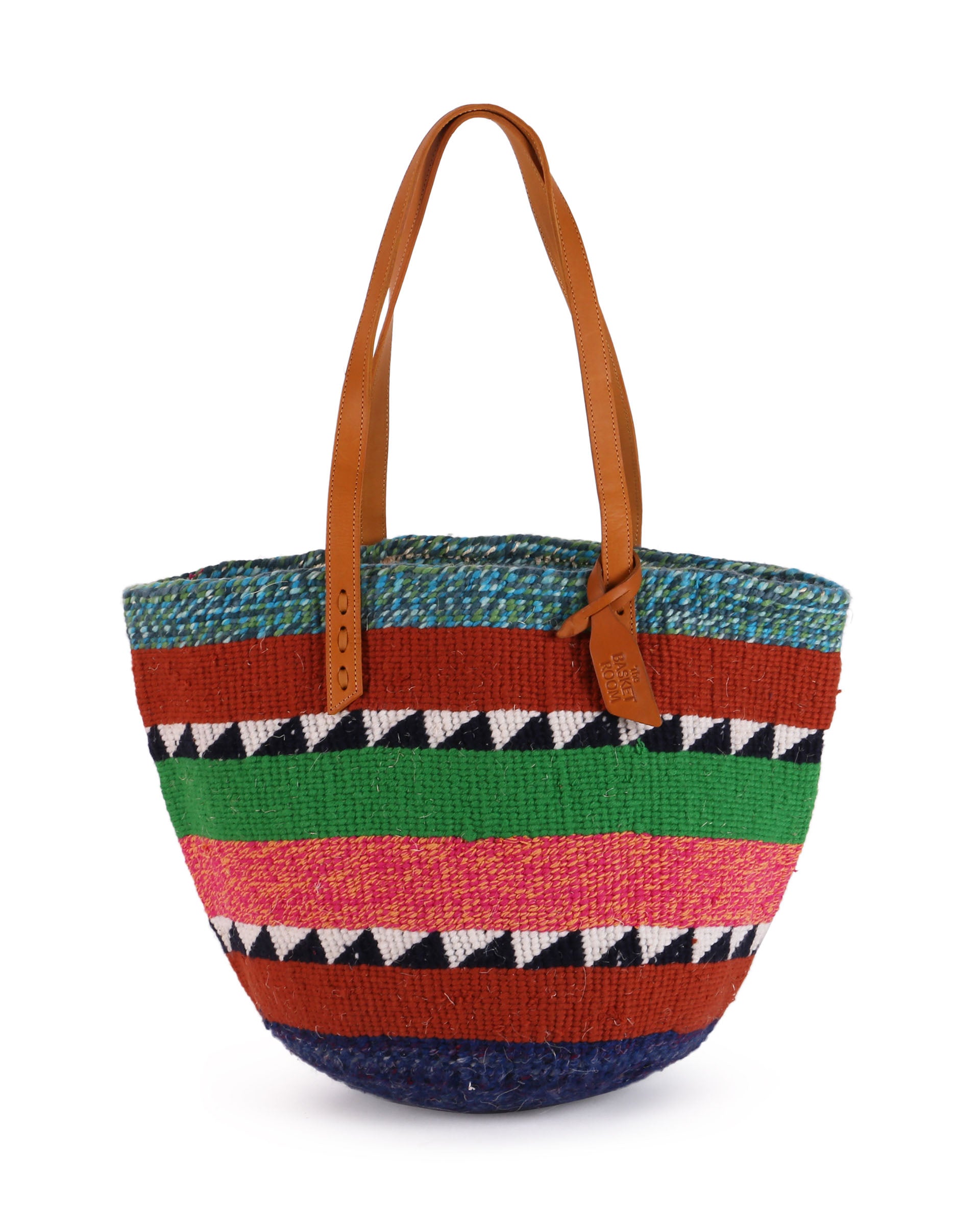 Our exquisite and ethical basket bags are inspired by tribal patterns and traditional Kenyan colourways, and hand woven by members of the Kamba tribe in Kenya. Each basket bag takes up to four days to complete before being sent to a local leather works to be fitted with beautifully supple cow hide straps.