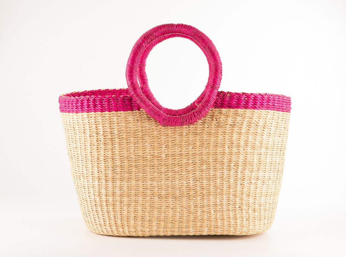 KANN: Oval Pink Rim Bolga Shopping Basket