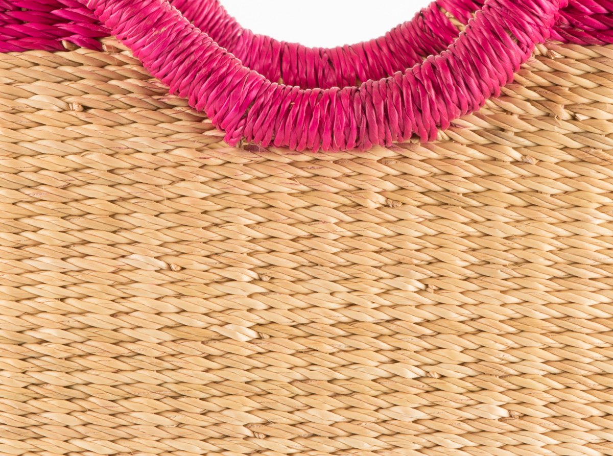 The very thing for picking up flowers at the local market and days out on holiday, the beautiful KANN bolga basket shopper is the perfect antidote to wasteful plastic shopping bags. With a bold pink rim against un-dyed grass, this woven basket will bring a shout of Ghanaian colour and style to your every day.