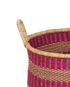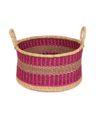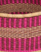 This exquisite ADIBO hand woven floor basket has been produced in Ghana by a member of a weaving cooperative. Boasting tribal patterns of Pink and Purple this round storage basket will bring a dash of ethical style to any corner of the home. Fill with blankets, kindling, craft projects or toys – you’ll keep finding new uses for yours! Every small woven basket in this collection is unique – made once and sold once.